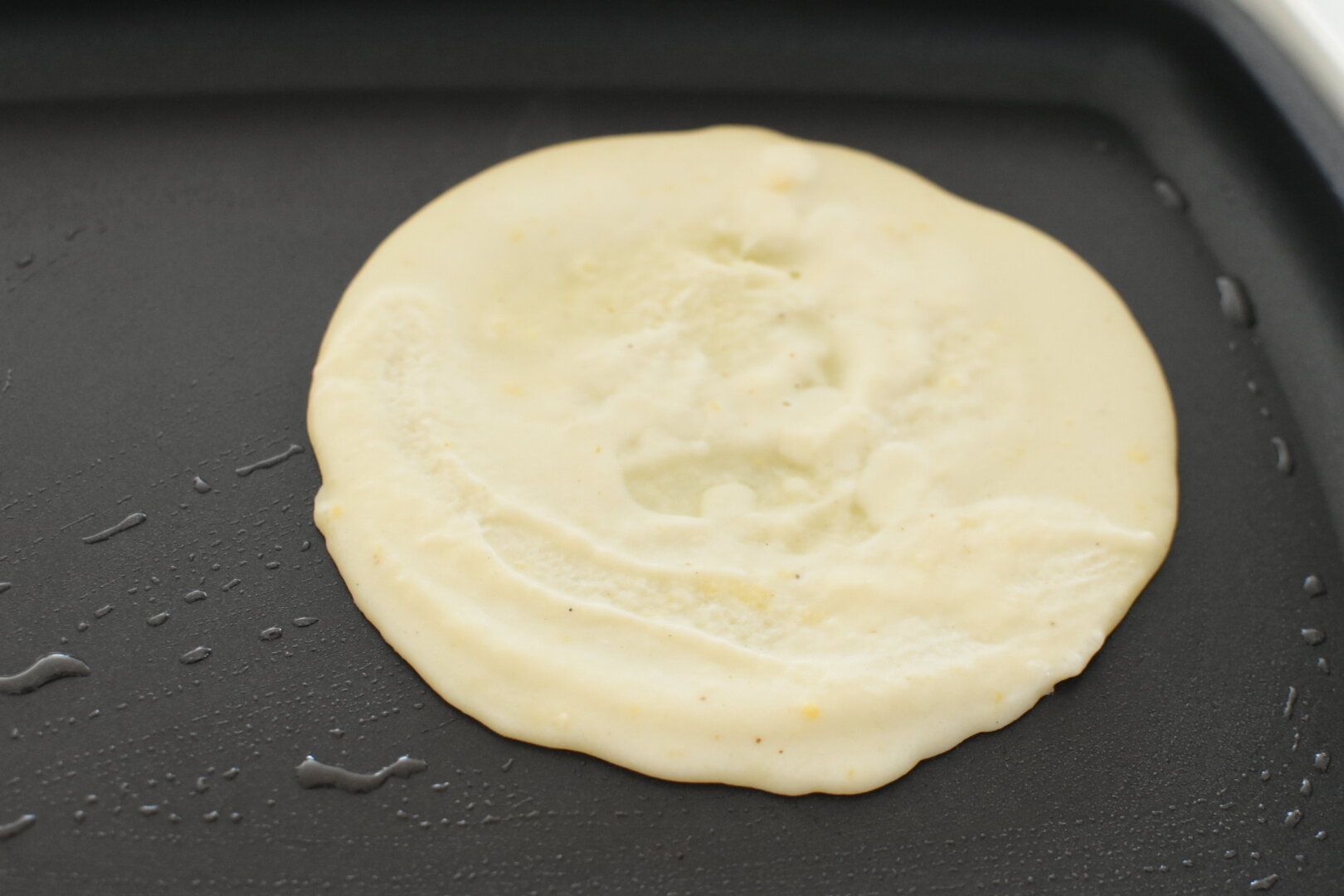 ホットプレートで生地を焼いていきます