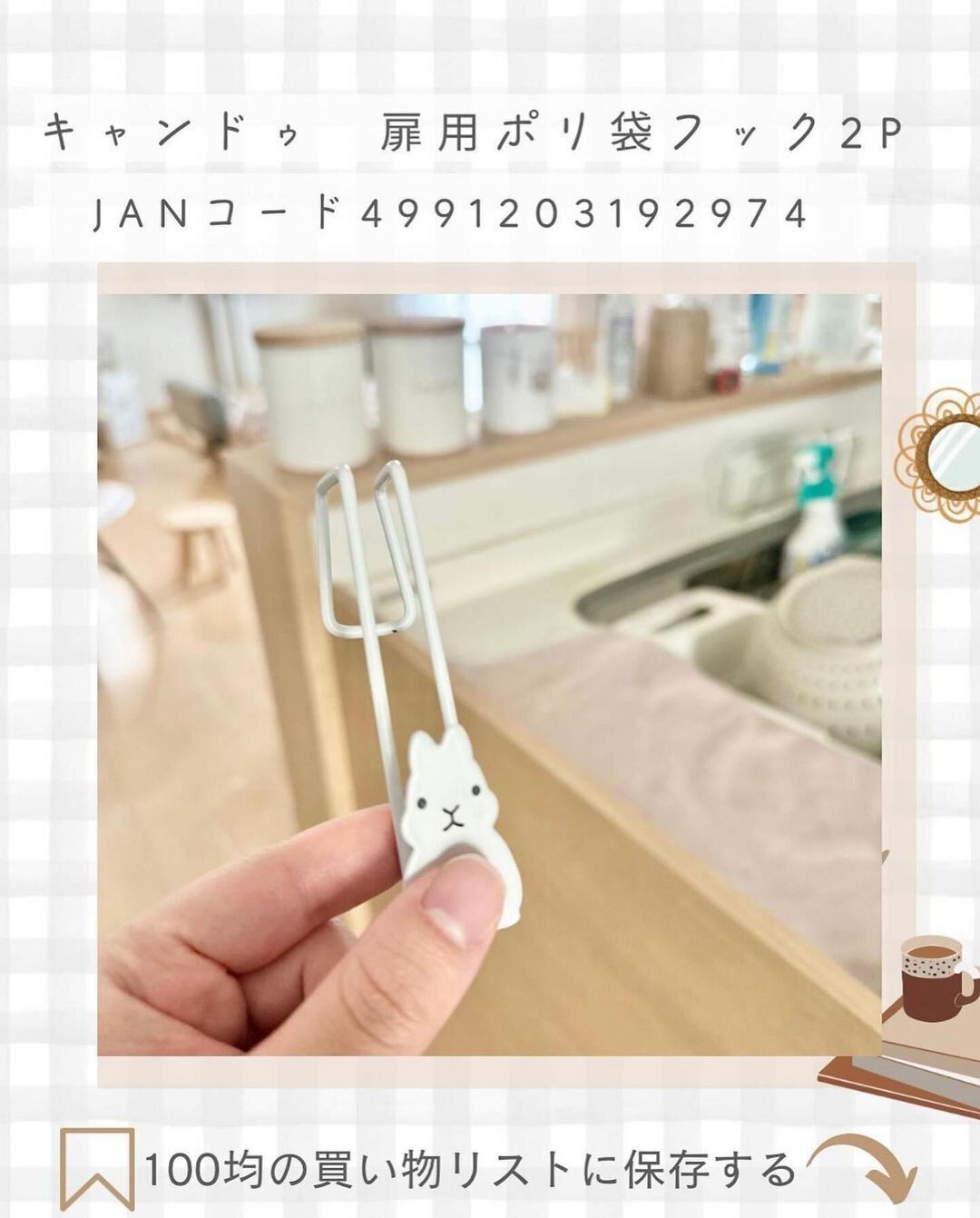 キャンドゥで販売している「USAGI 扉用ポリ袋フック2P」(110円)の、本来の用途とは違う使用方法3選をご紹介!こちらのフックは2個入りで、かわいいウサギのデザインがポイントに。