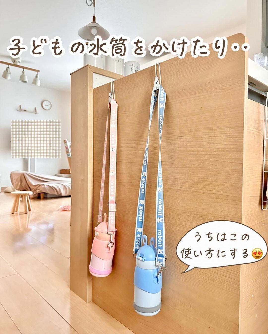 置き場に困りがちな子どもの水筒かけとして使用することもできますよ。2個入りなので、2人兄弟でも問題なし!かわいいウサギが目印になって、子どもが自分でかけてくれそうですね。