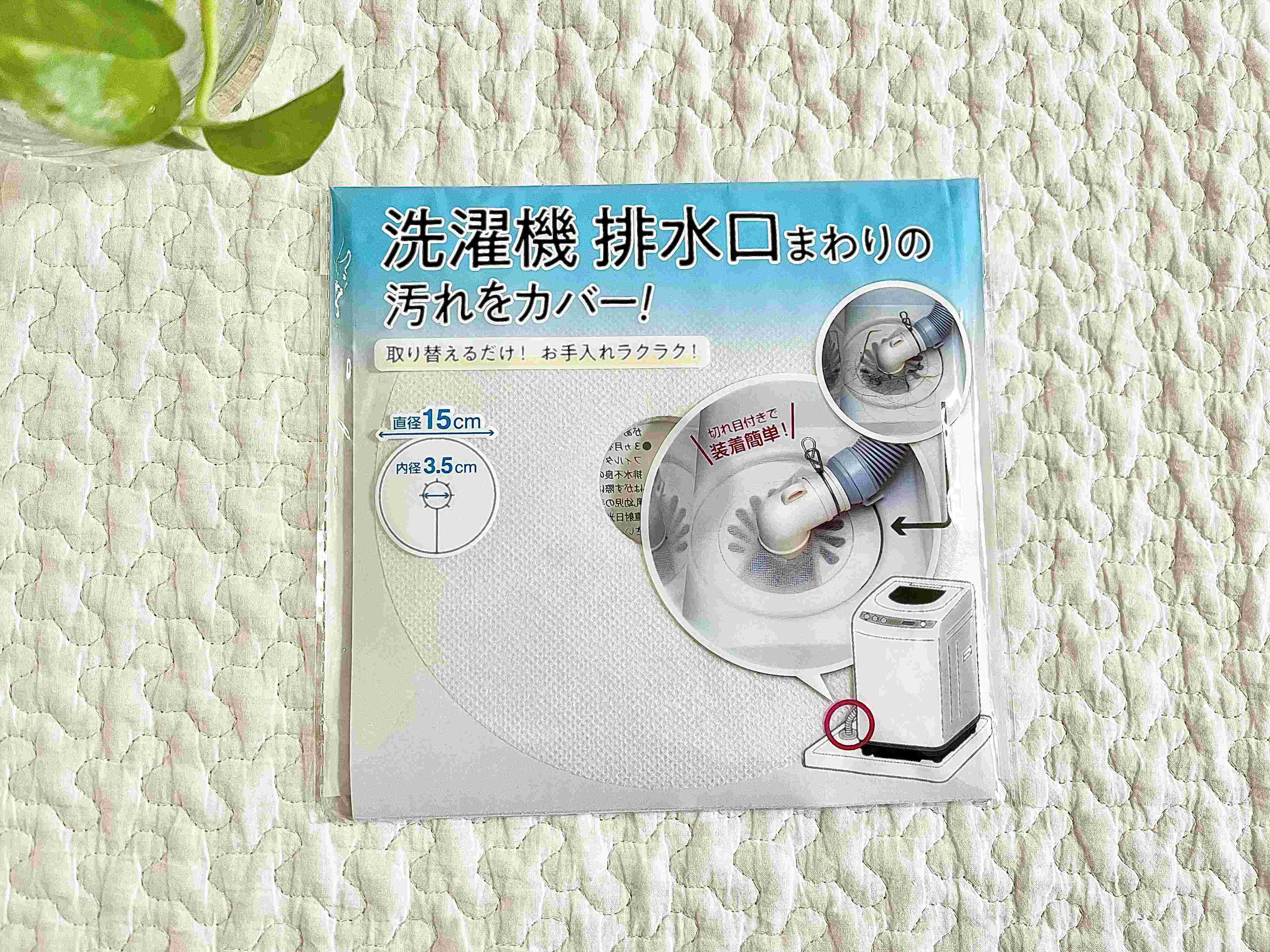 ご紹介するのは、セリアの「洗濯機用 排水口カバーフィルター」という商品。排水口のまわりは、目につきにくくお掃除を忘れがちな場所。でも埃が溜まってしまうとお掃除が大変なので、なんとかしたいと思っているかたも多いのではないでしょうか?