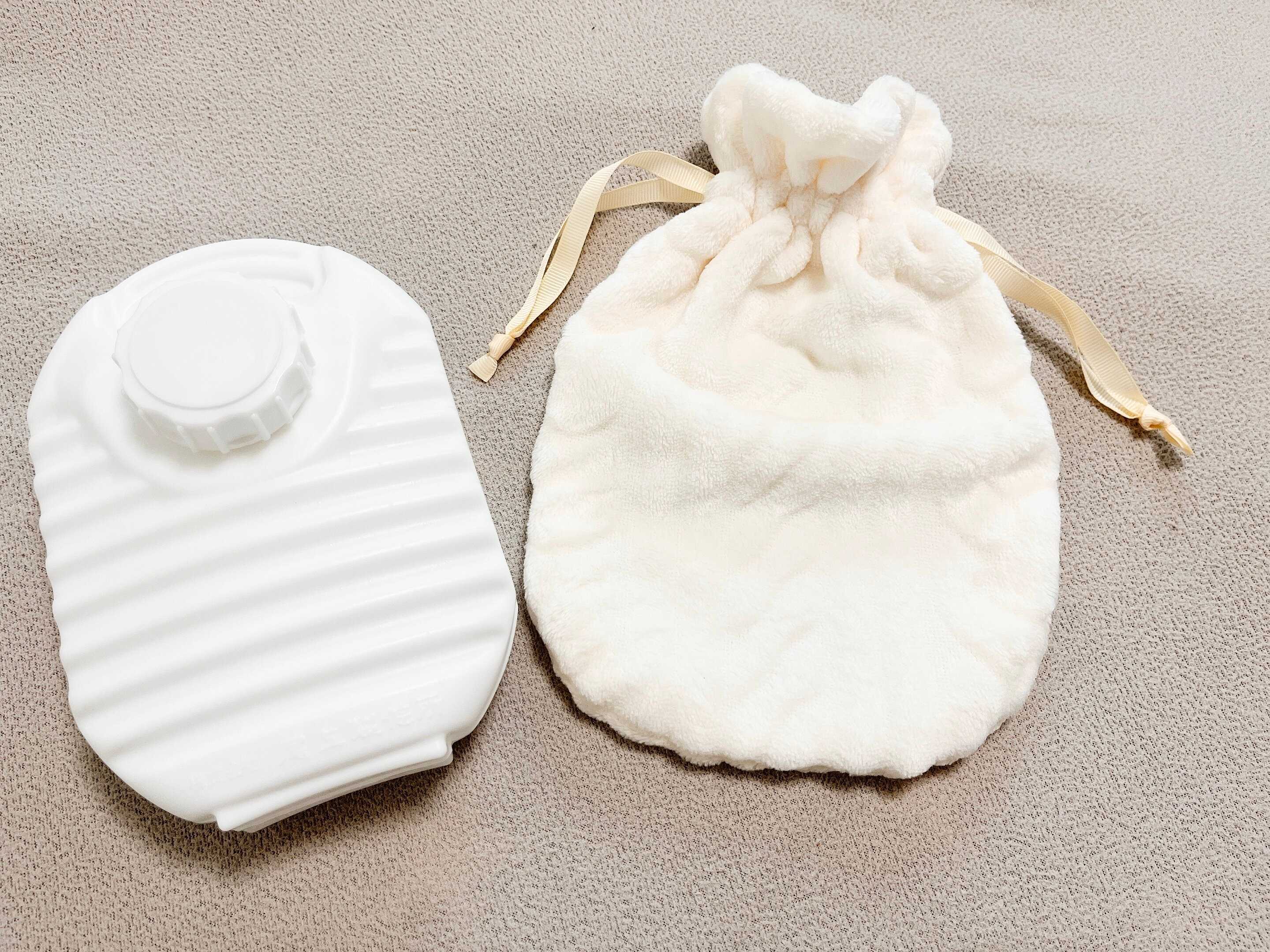 真っ白な湯たんぽとオフホワイトのカバーはシンプルでオシャレです。