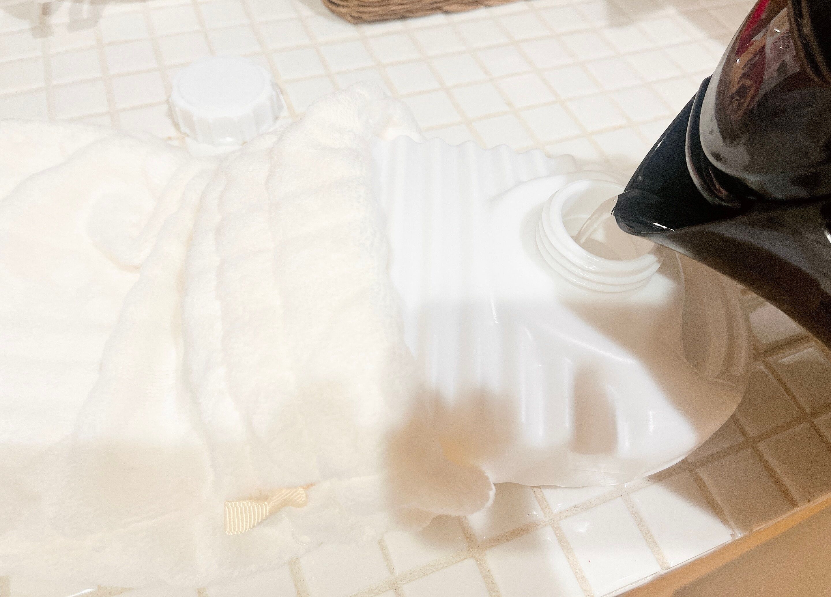 お湯を沸かし、口まで満タンにいれます。お湯は70℃~90℃ぐらいが推奨されているそうです。