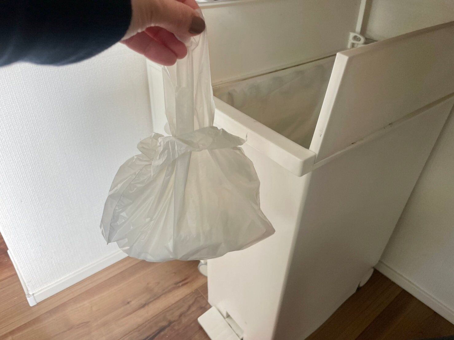 使い終わった後は、袋の上部にある穴から袋を通してきゅっと封をして捨てるだけ。捨てる時もラクに感じられるアイテムでした。