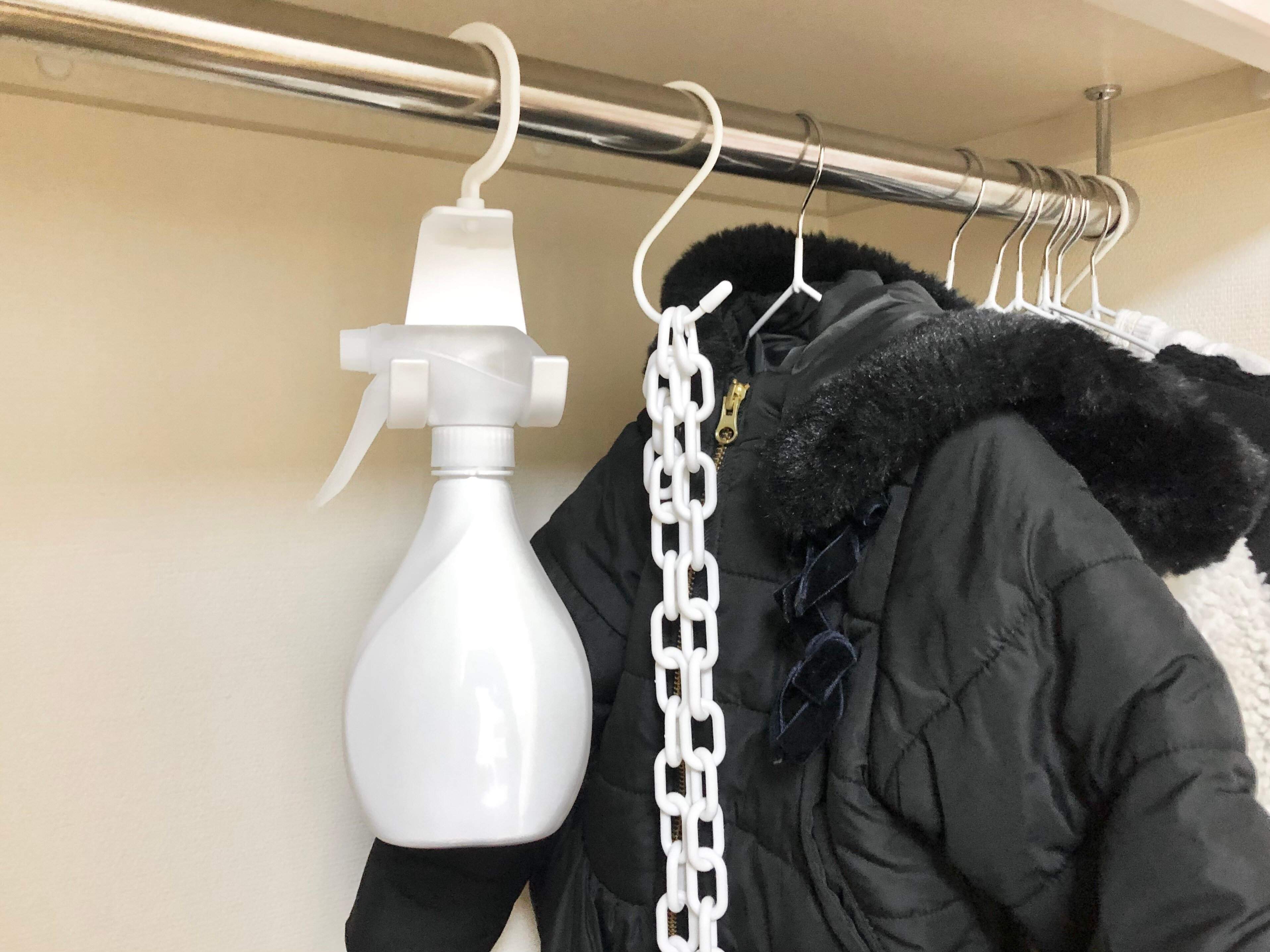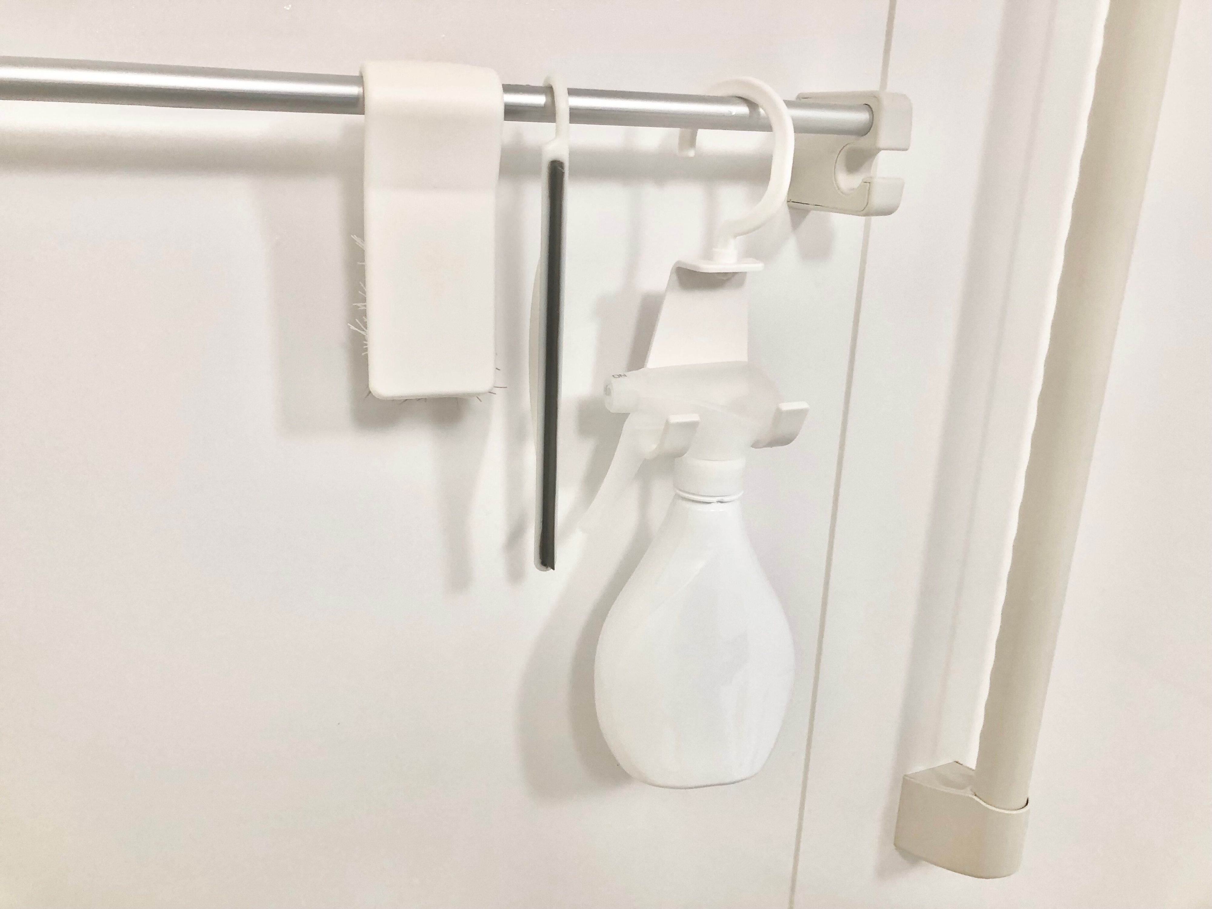 あとはクローゼットもおすすめです!直径が32mmまでの太さのポールに使用できるので、クローゼットのポールにも使用できちゃうんですよ。お洋服と一緒にファブリックミストなどを引っ掛けておけば、使いたい時にサッと手に取って使えるので便利です。
