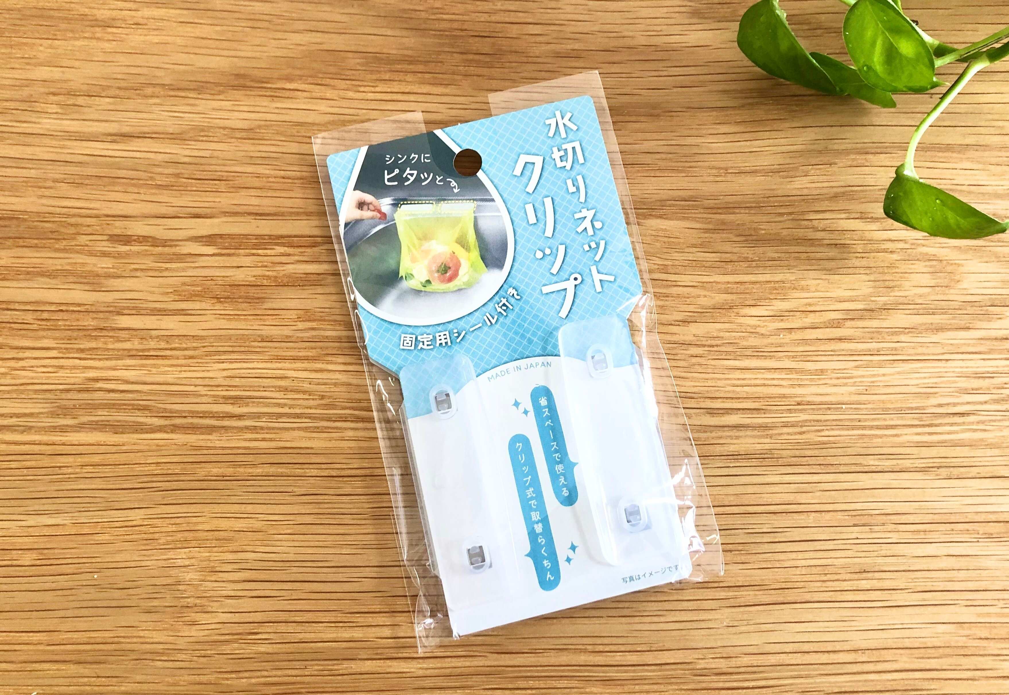 ご紹介するのは、セリアの「水切りネットクリップ 2P」という商品。三角コーナーは便利だから使いたいけど、キッチンのシンクが狭くて置き場所に困るというかたにおすすめの商品です。