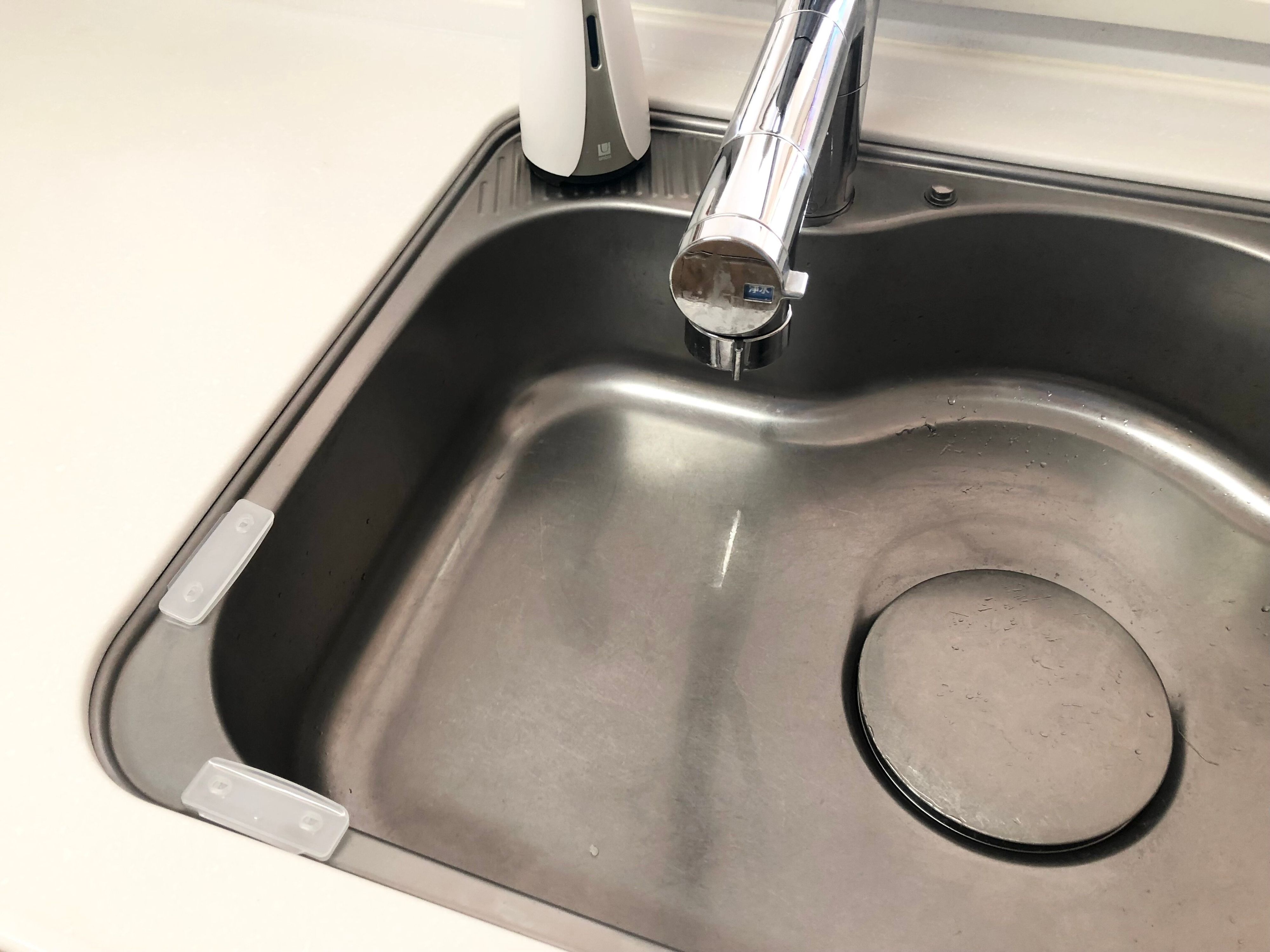 最後にクリップを開いて、水切りネットを挟み込んだら設置完了です。設置しても邪魔にならないぐらいコンパクト!これならシンクを広々と使えるので、食器洗いのときもスムーズに洗えてとっても便利です。