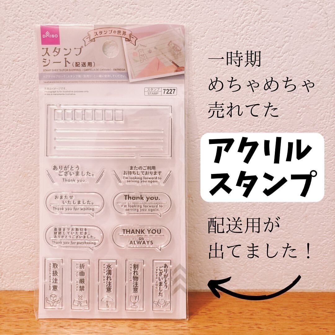 過去に人気だったアクリルスタンプに、配送用が新登場!フリマアプリ愛用者にはとっても使えるアイテムです。スタンプの見た目も透明でおしゃれ。「スタンプシート(配送用)」はもちろん110円です。