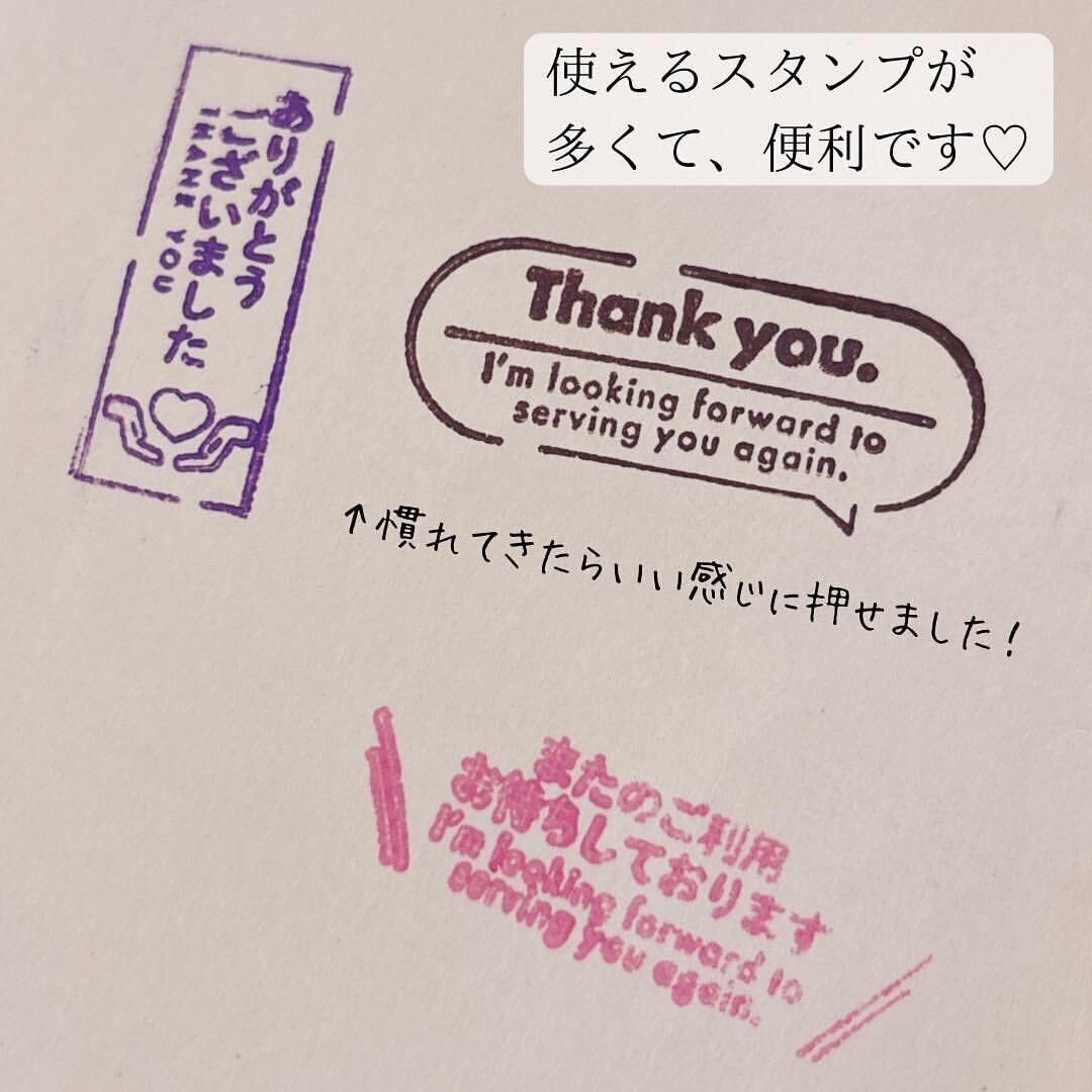 インクの色を変えるだけで、雰囲気も変わります。スタンプのメッセージの種類もいくつかあるので、フリマアプリで発送をする際になにかと使えて便利ですよ!