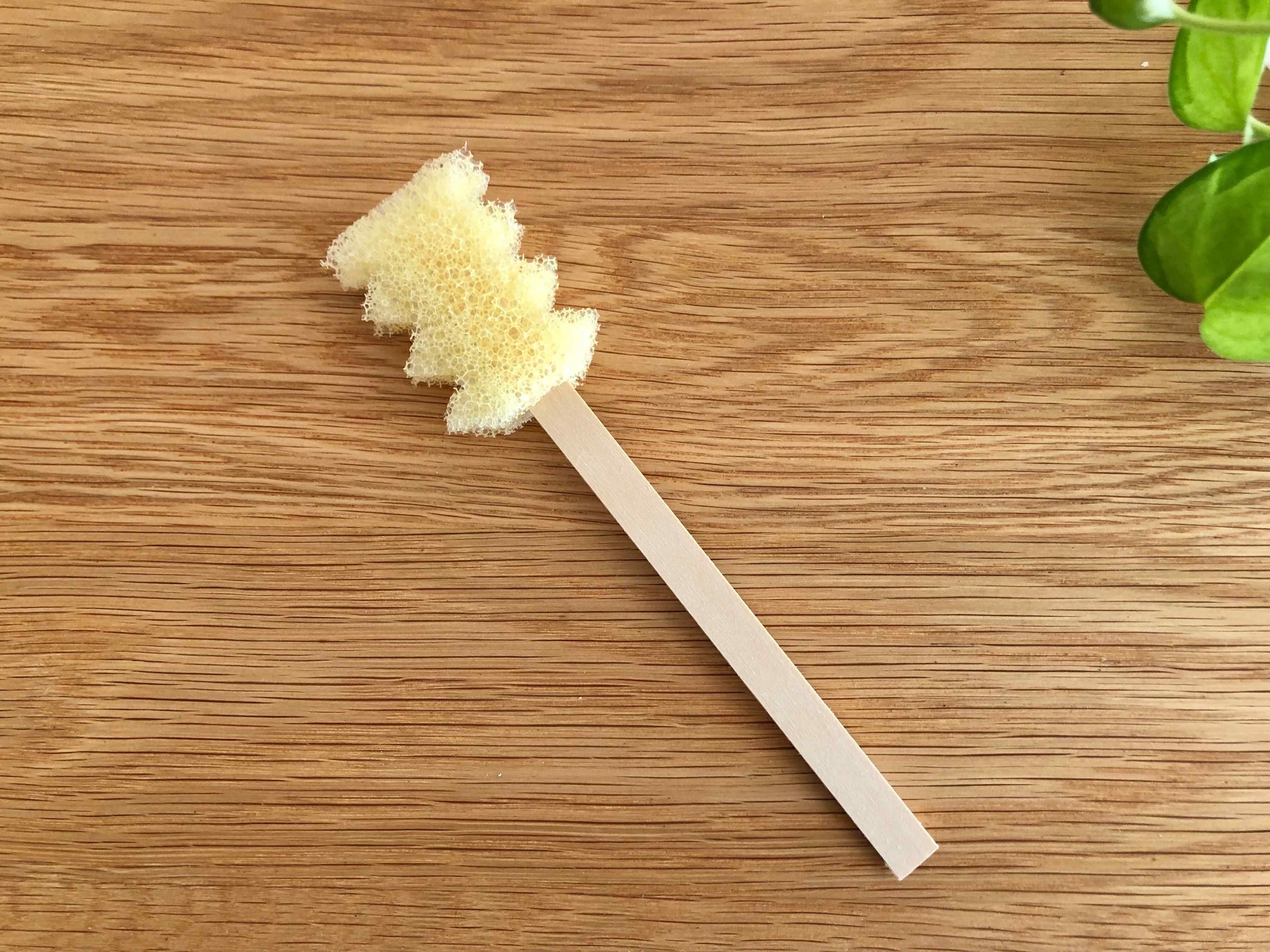 商品の形状はギザギザのポリウレタンのスポンジに、柄の部分が付いた珍しいデザイン。