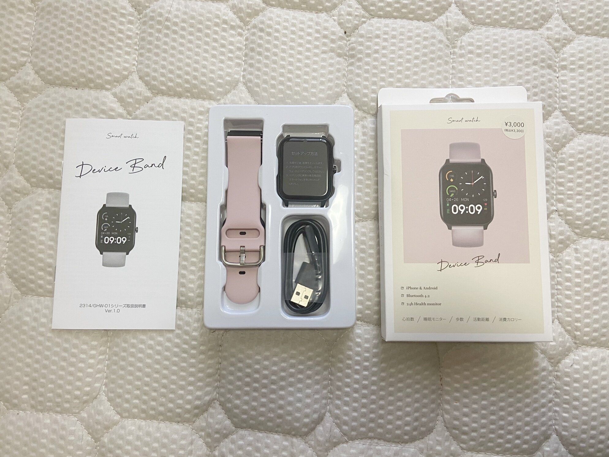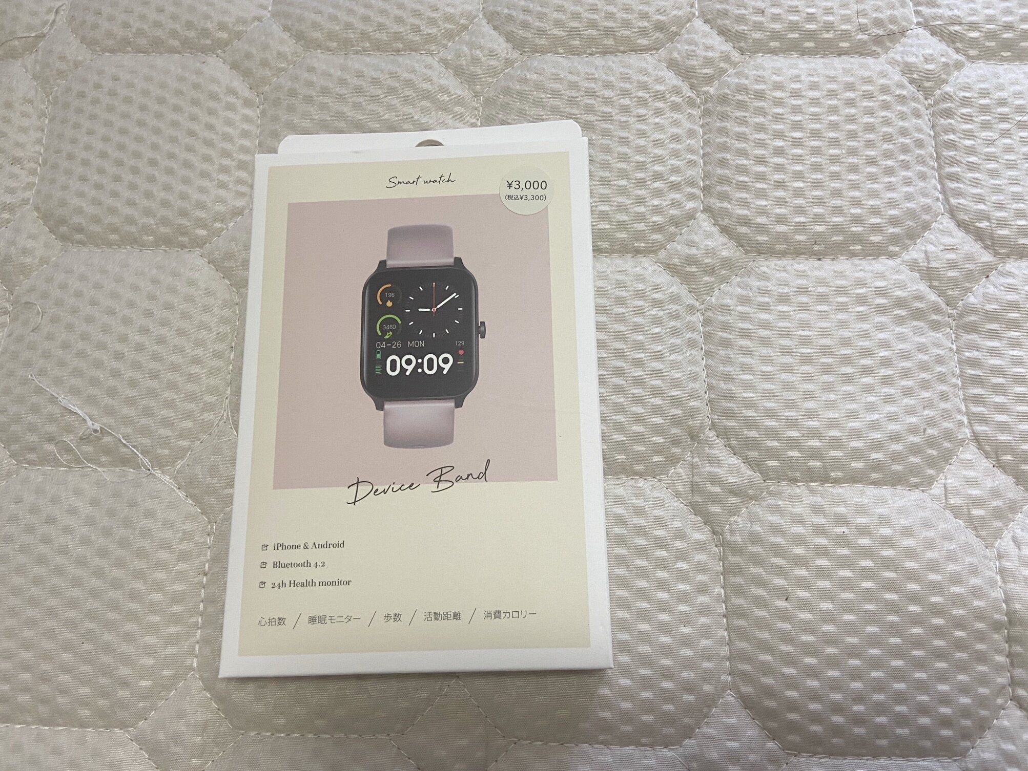 など、様々な機能を搭載したスマートウォッチです。カラーはピンクの他にベージュ・パープルの3色展開。どのカラーにもブラックのベルトもついています。