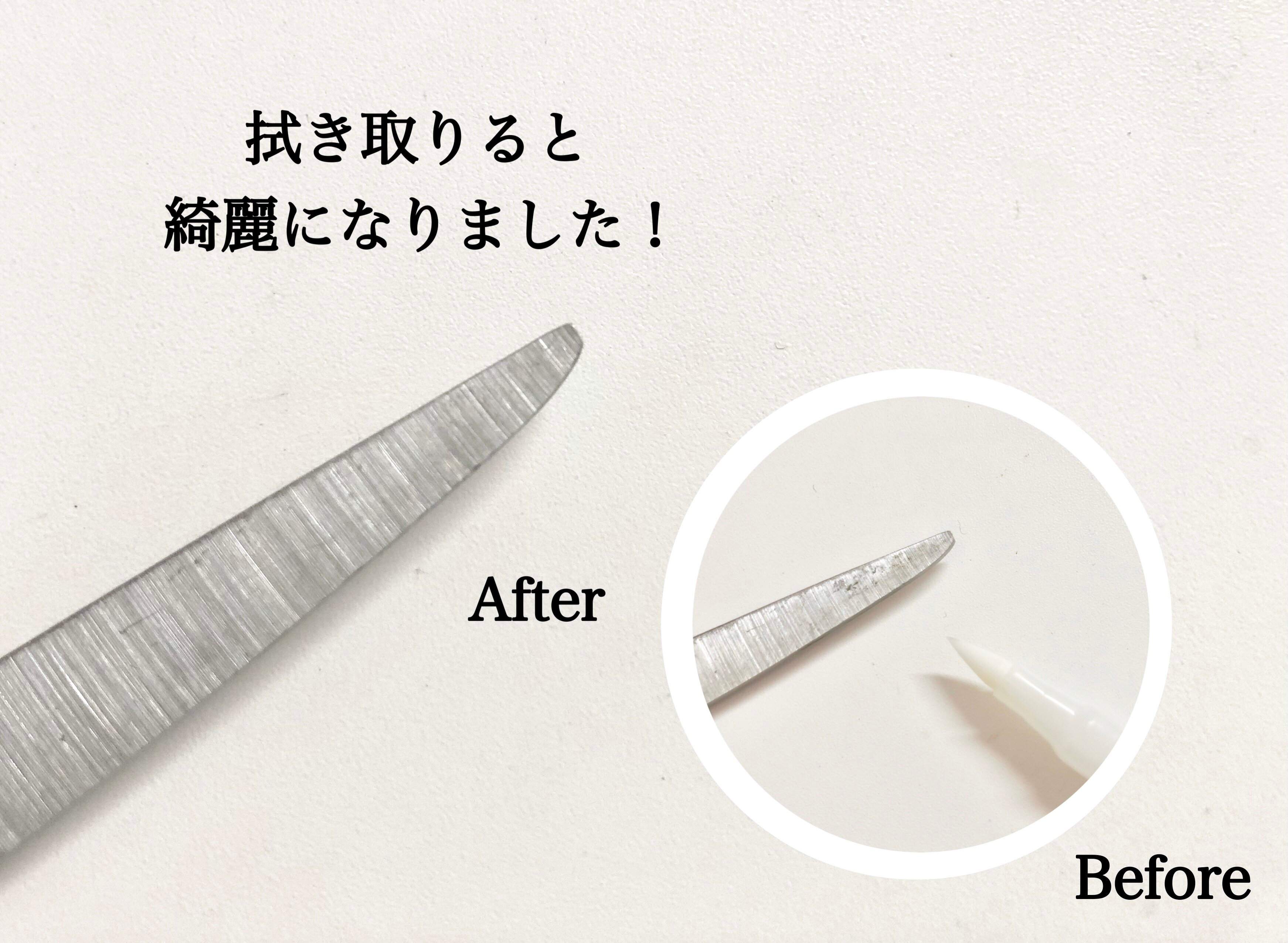 たったこれだけで取れにくかった汚れが取れ、ハサミの刃もスムーズに動くようになります。