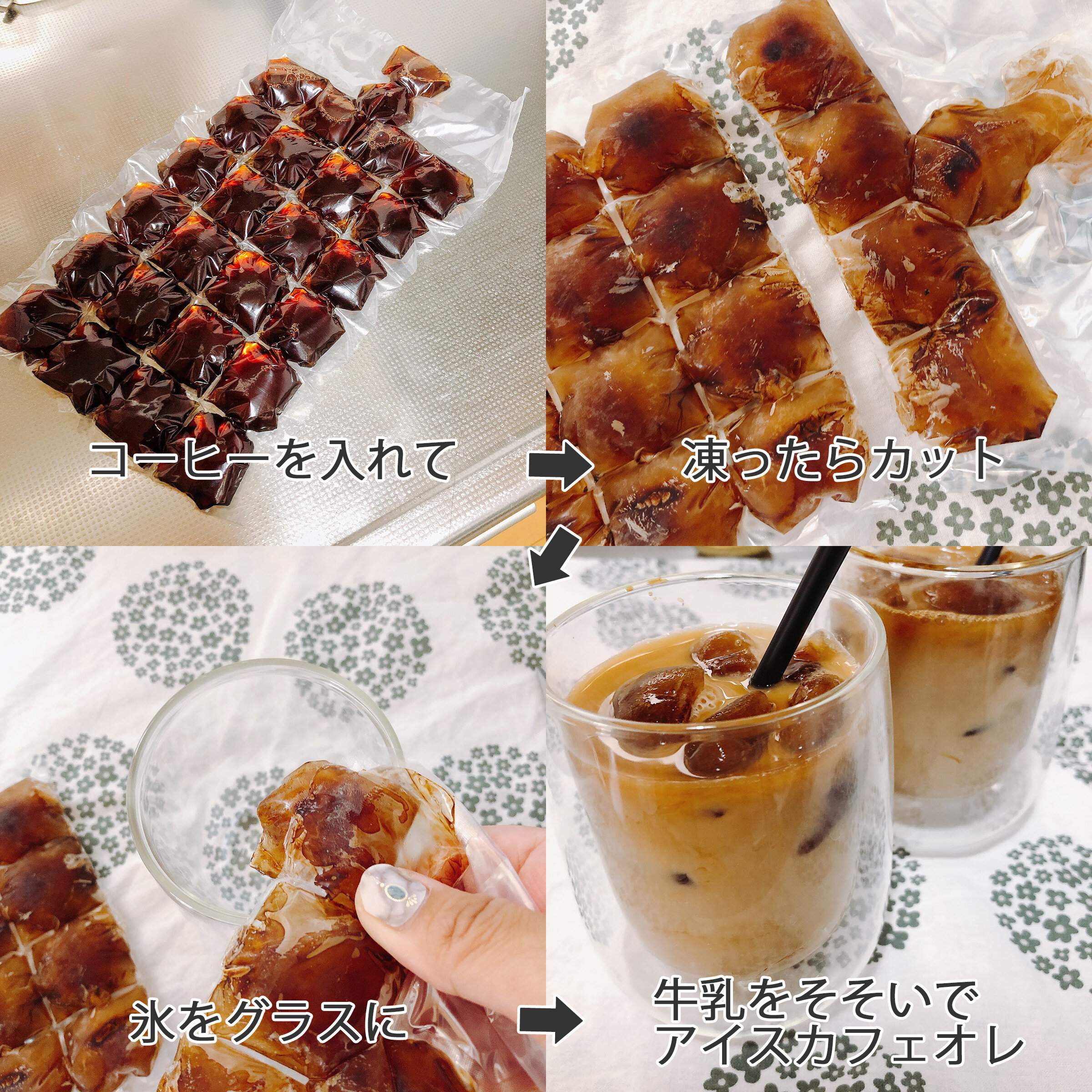 コーヒーを凍らせておけば、薄まらないアイスカフェオレも簡単につくって飲むことができます。