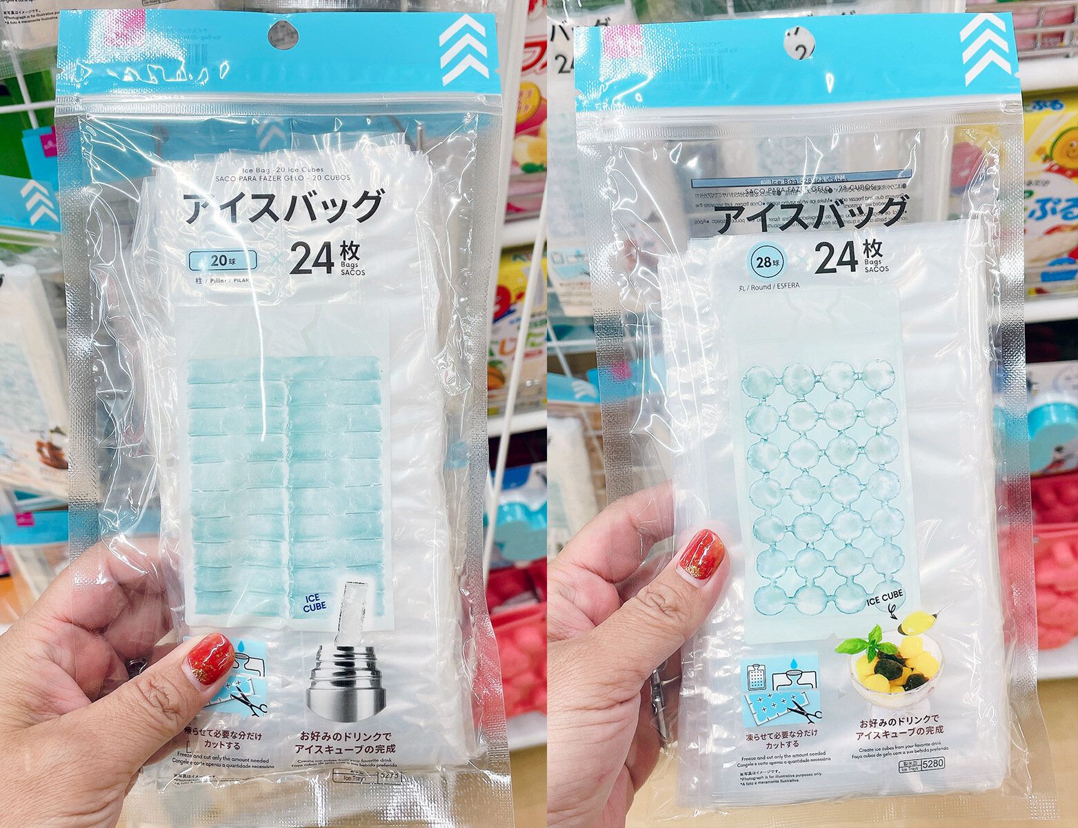 マイボトルに入れるのにちょうどよい細長いものや、シャーベットをつくるとかわいい丸型が仲間入りしています。