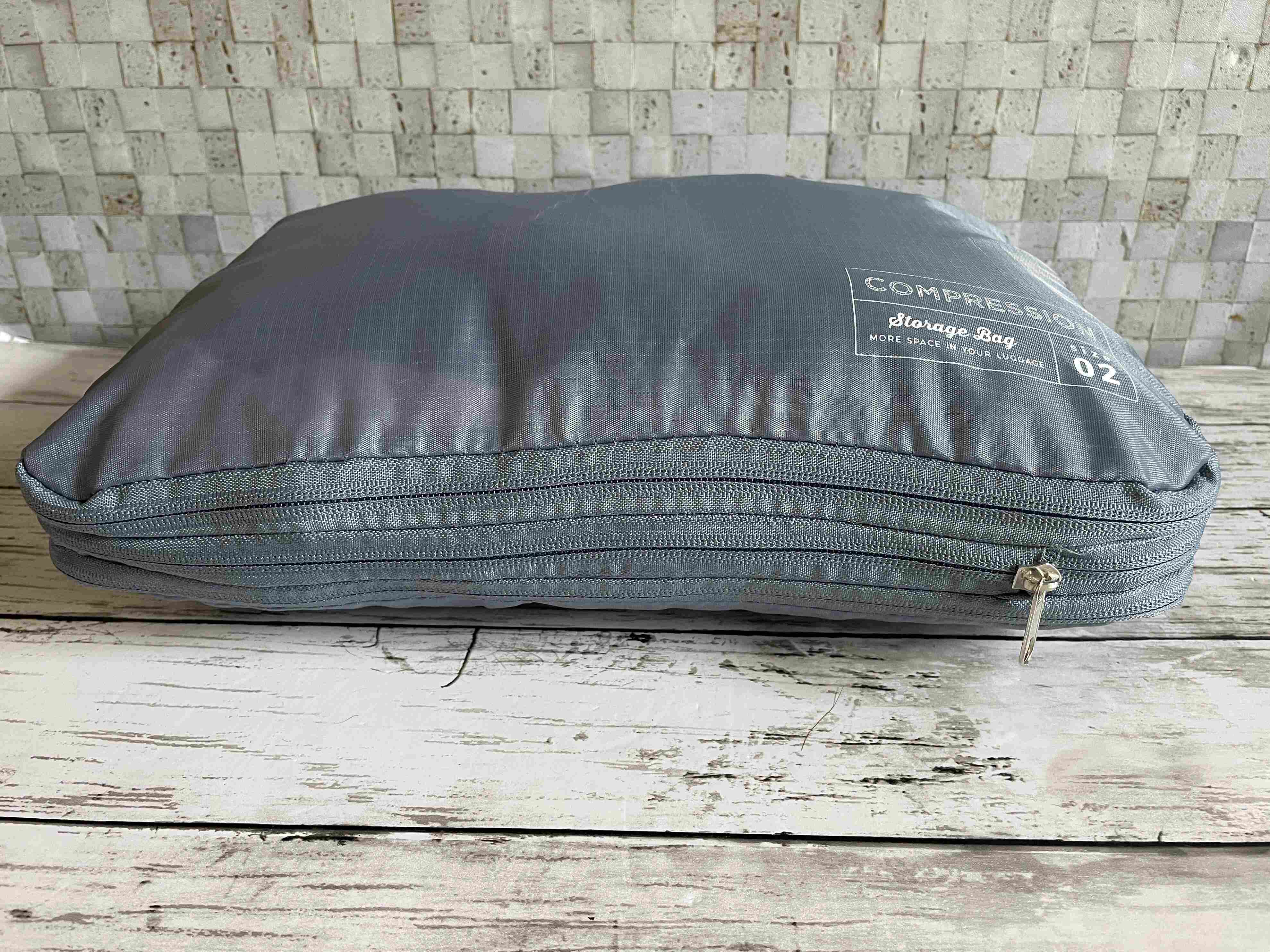 空気を押し出したり掃除機で圧縮したりするタイプではなく、ファスナーポーチ型の圧縮バッグでラクに洋服をコンパクトにできますよ。