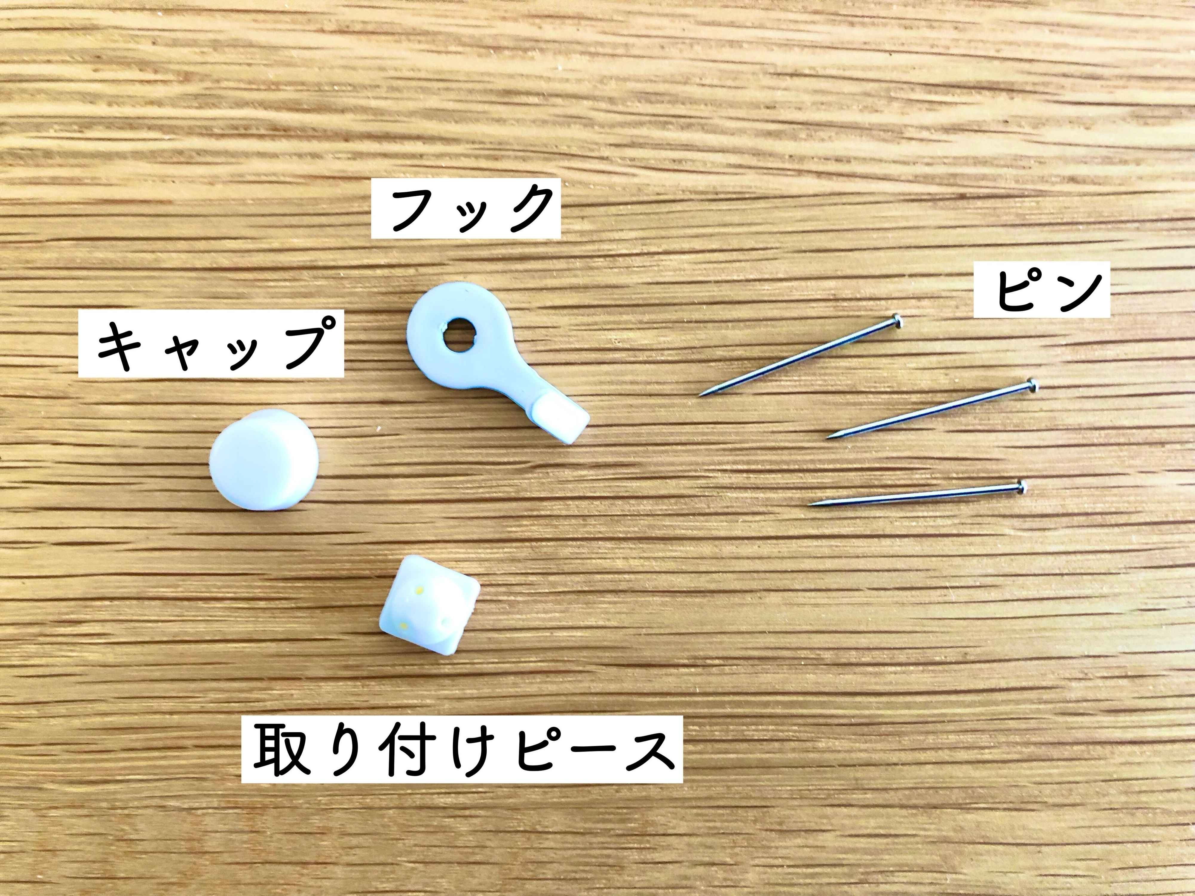 フックの取りつけには画鋲よりも細いピンを使いますが、3本使用することでしっかりと固定することができます。