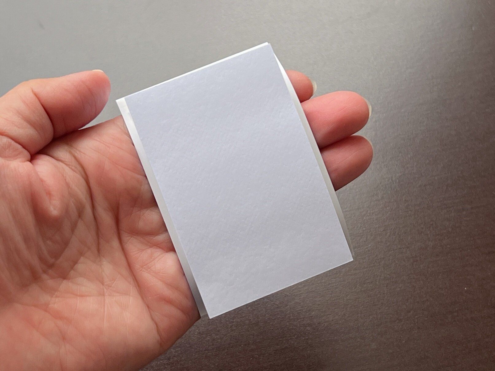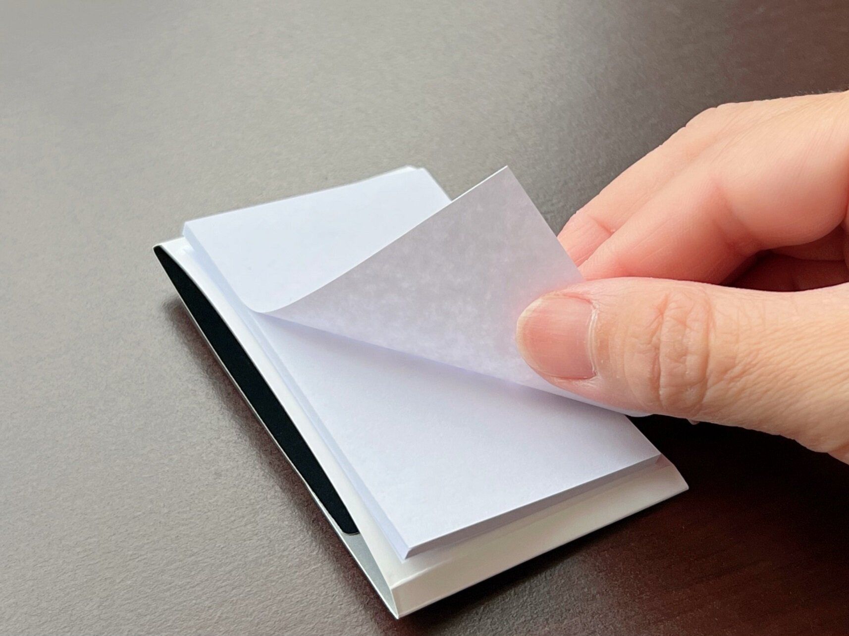 付箋は30枚つづりで、1枚目の厚めのシートを剥がしたら粘着面が出てきます。ちなみに1枚目のシートは粘着面と台紙がくっつくのを防ぐ役割があるので、捨てずに再利用することをおすすめします。