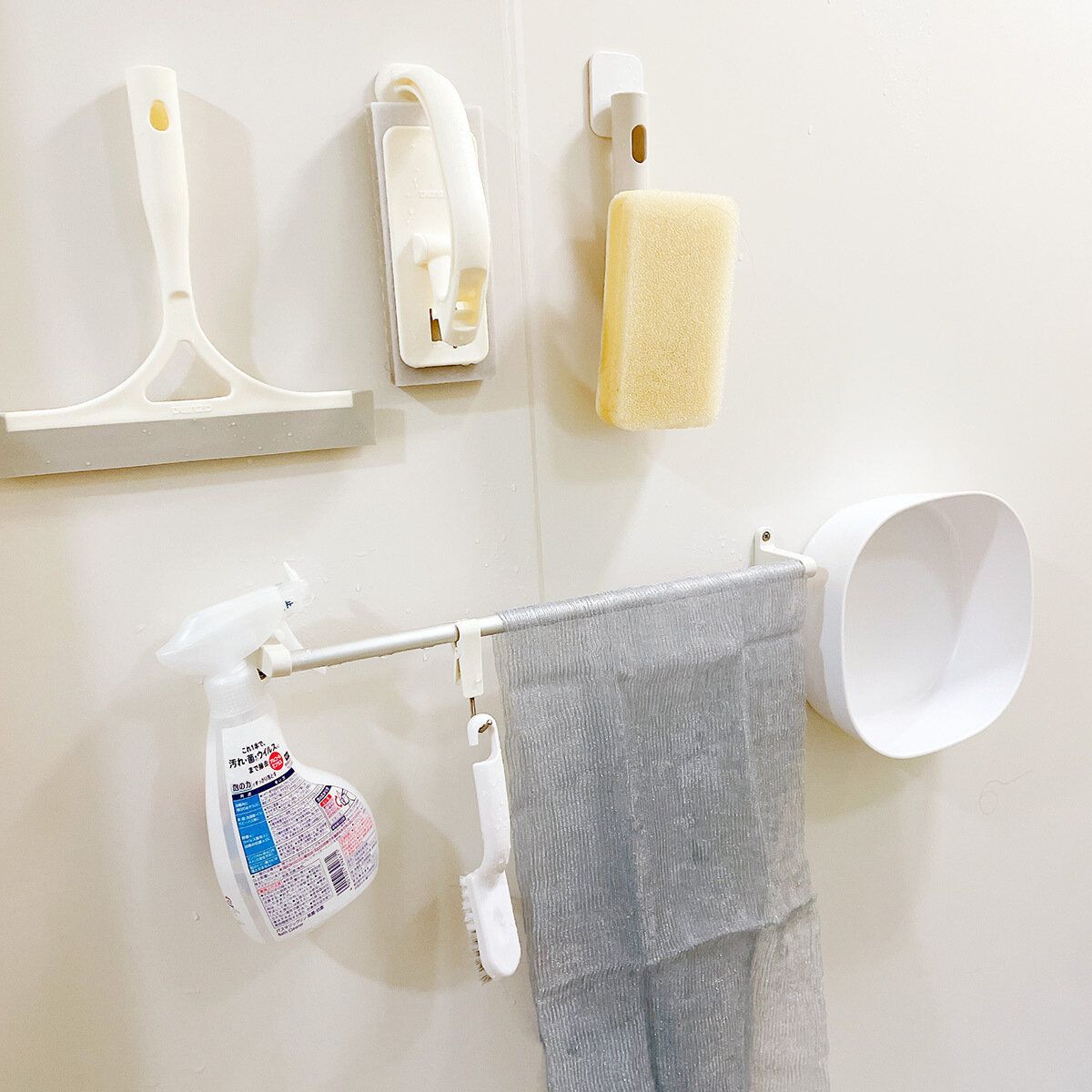 タオルハンガーだけでは足りない収納も、直接壁にマグネットでつけられるアイテムを選ぶとすっきりまとまります。