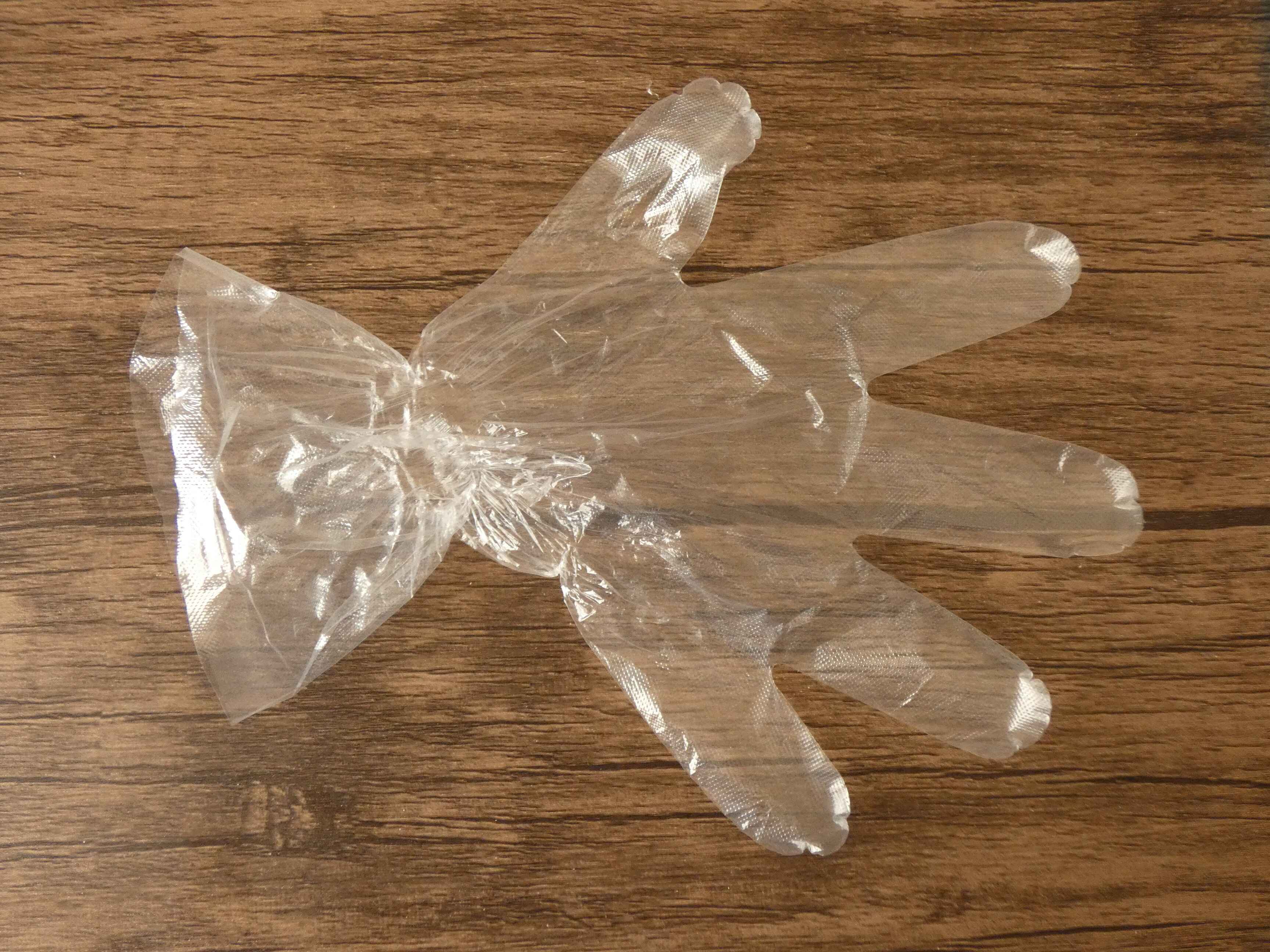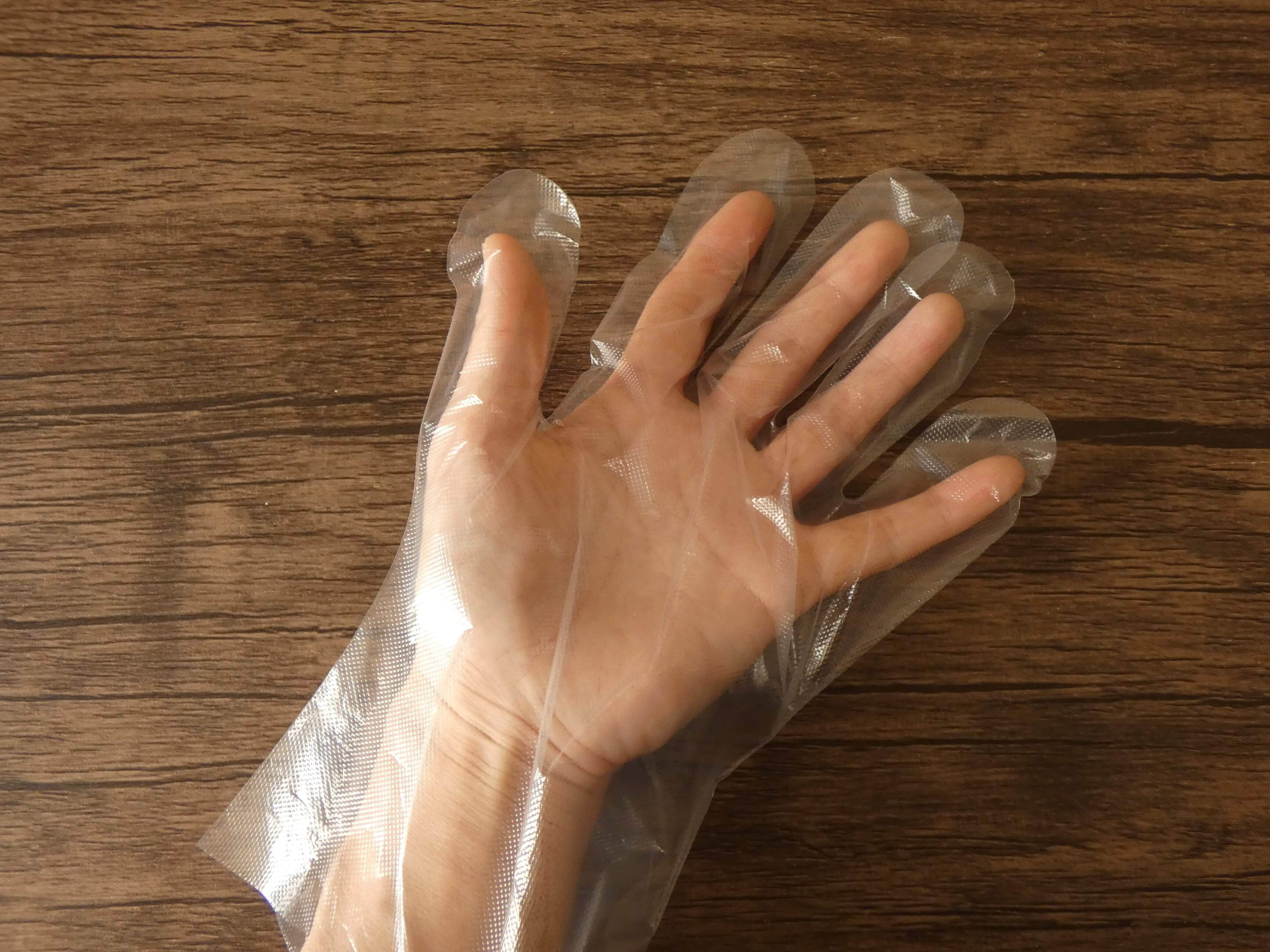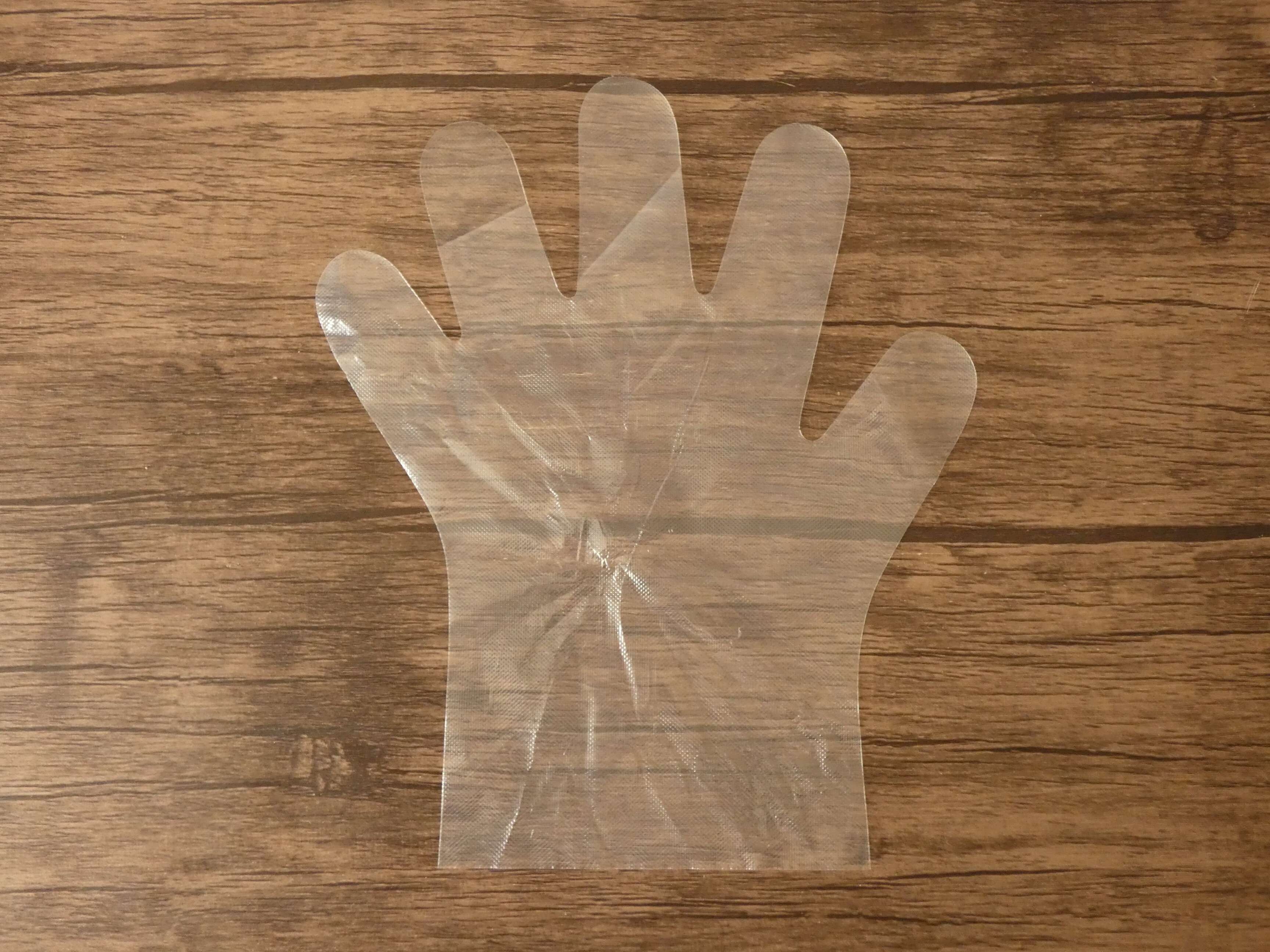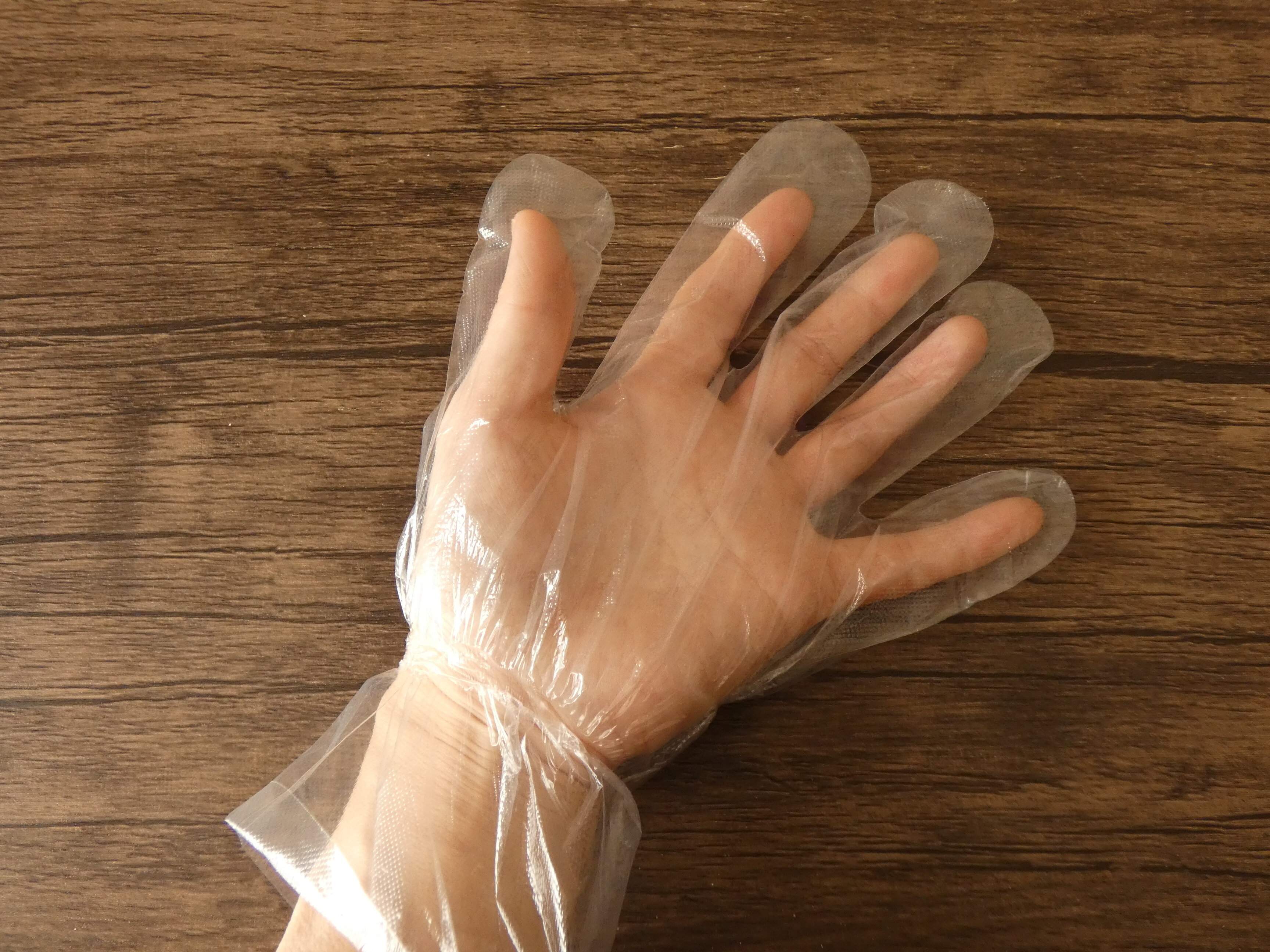手首にフィットするポリエチレン手袋