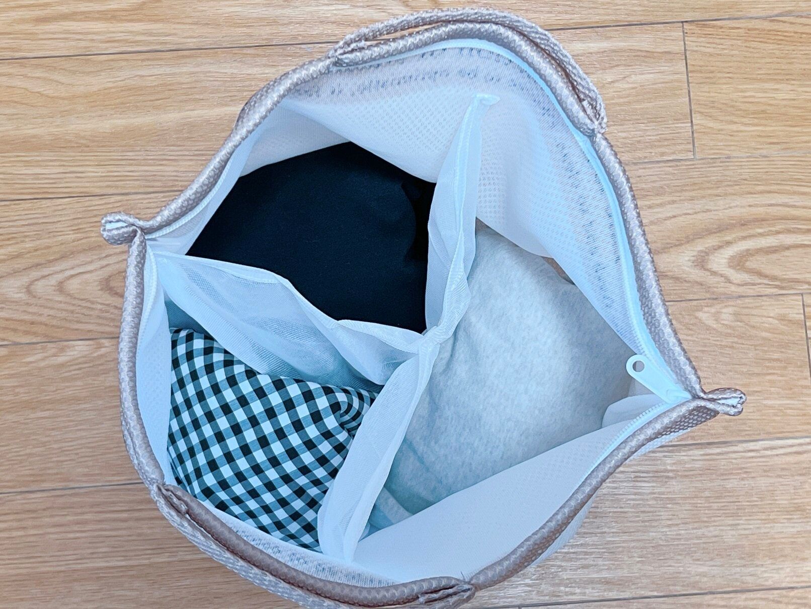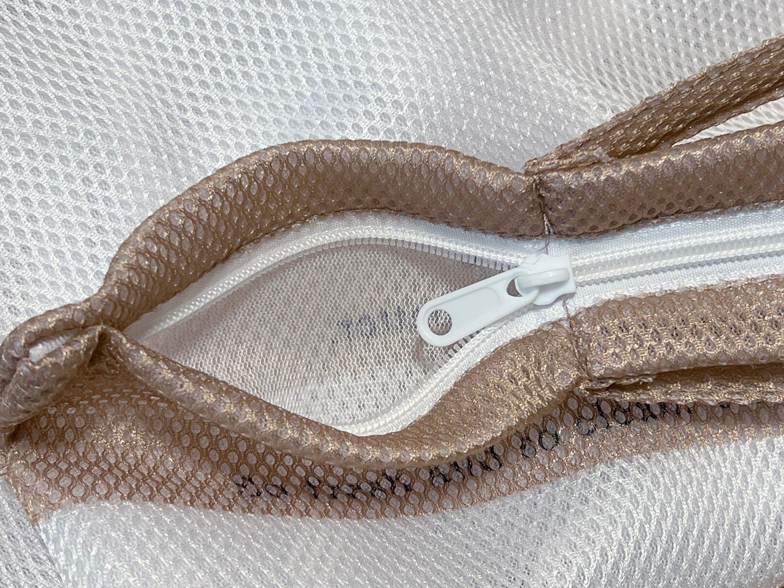 厚めのメッシュ素材なのでデリケート洗いにも最適です。ファスナーも大きめなので、楽に開閉できます。