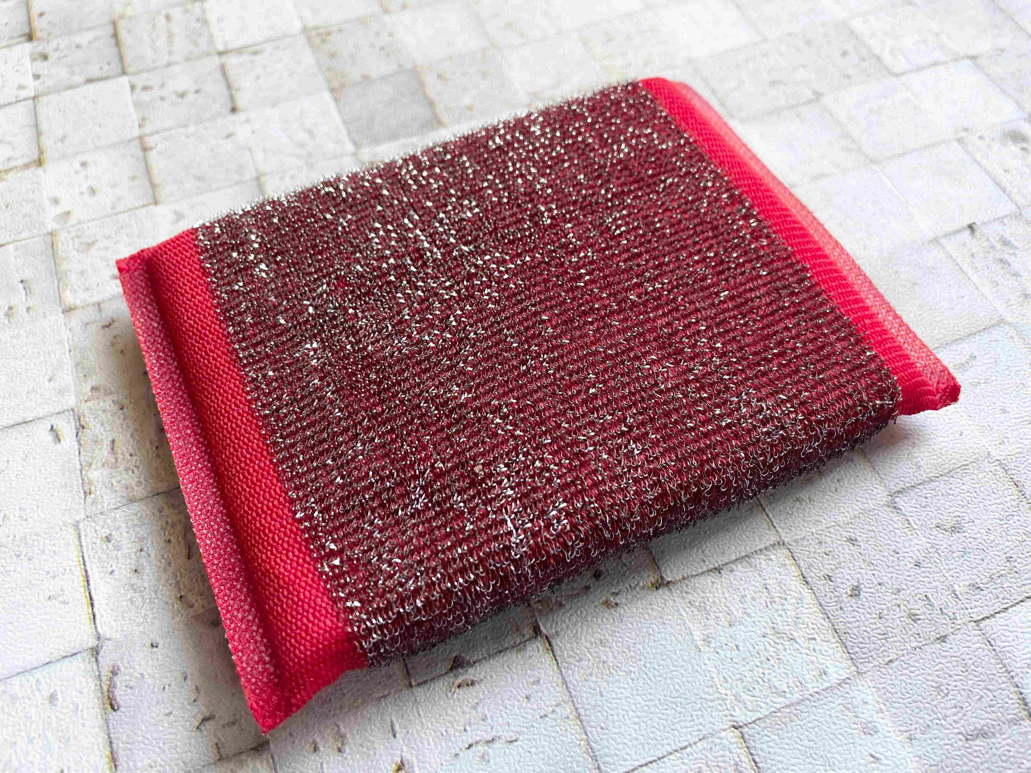 こちらは、ただのスポンジではなく、ステンレス繊維を編み込んだ布で包まれたスポンジなんです。