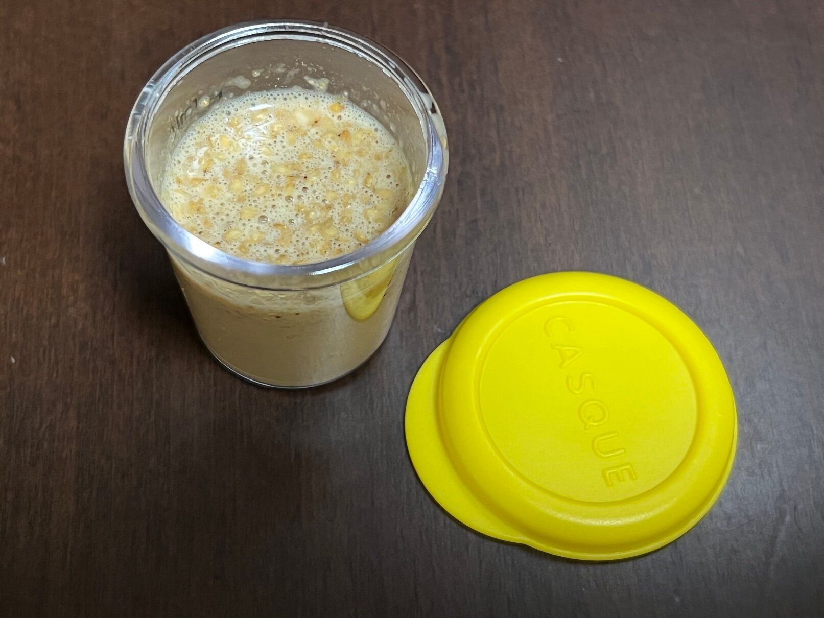 フタをしっかり閉めて数回振ると、しっかり混ざって簡単にごまドレッシングができました!