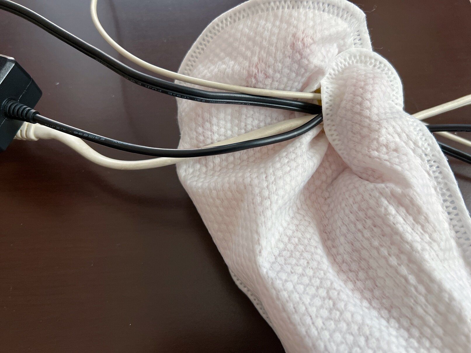 コードの束も掃除のしにくいところ!「ミトングローブ」なら、入り組んだところも指先でつまみながら拭けるからすっきりします。
