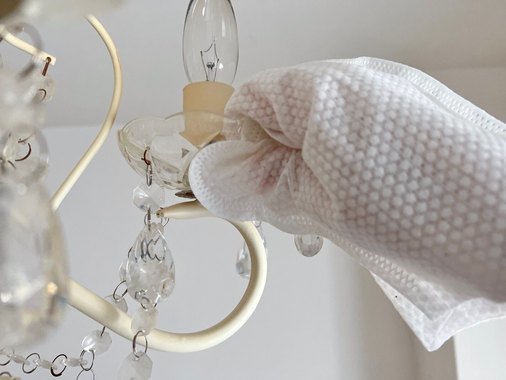 サッシの細かい溝、照明器具の細かい部分も雑巾では拭きにくいけれど、「ミトングローブ」ならラクに掃除ができます。