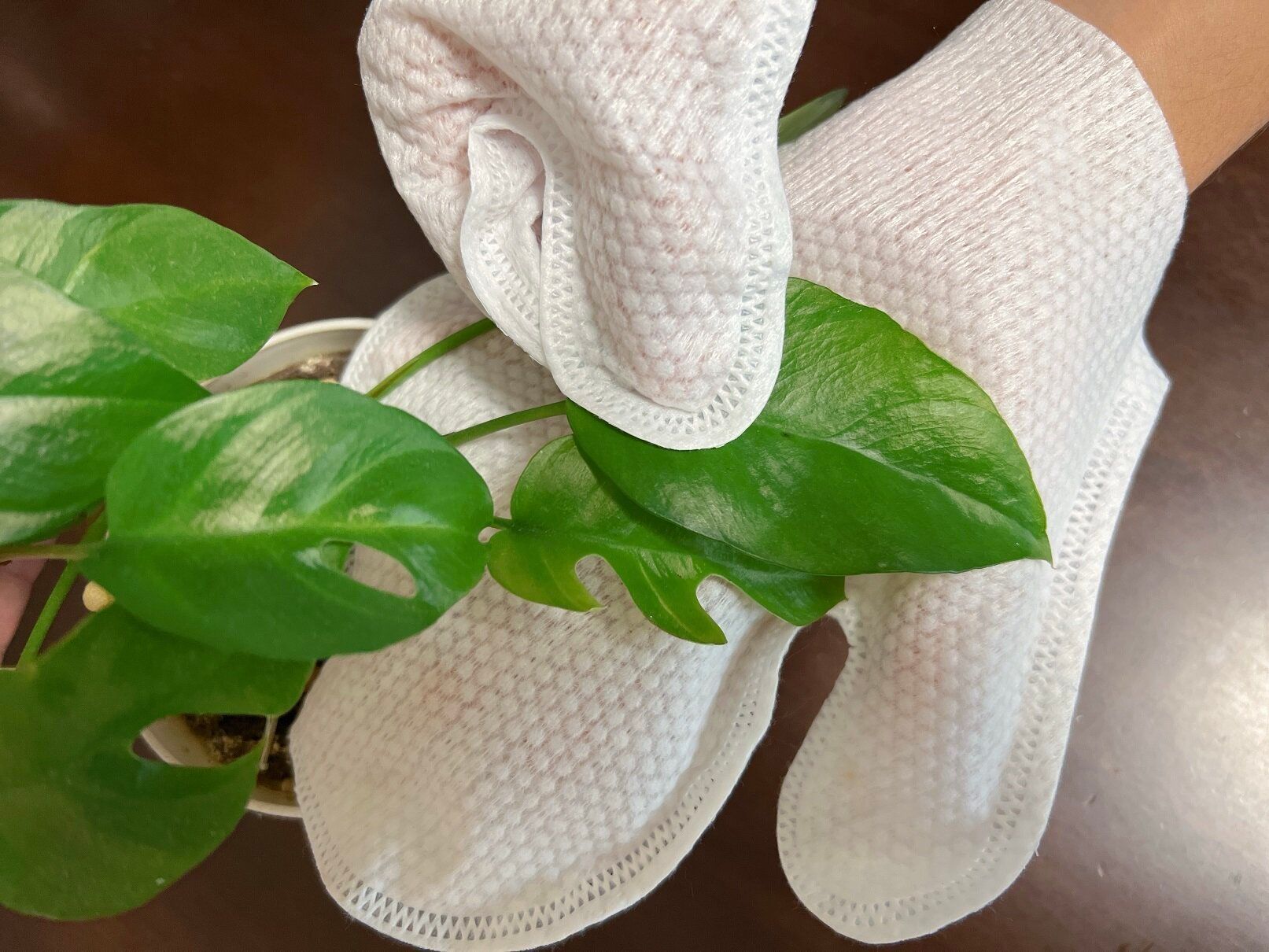 観葉植物も優しく撫でるとピカピカになります。家中掃除して両面が汚れたら、くるりとひっくり返してゴミ箱へ捨てましょう。