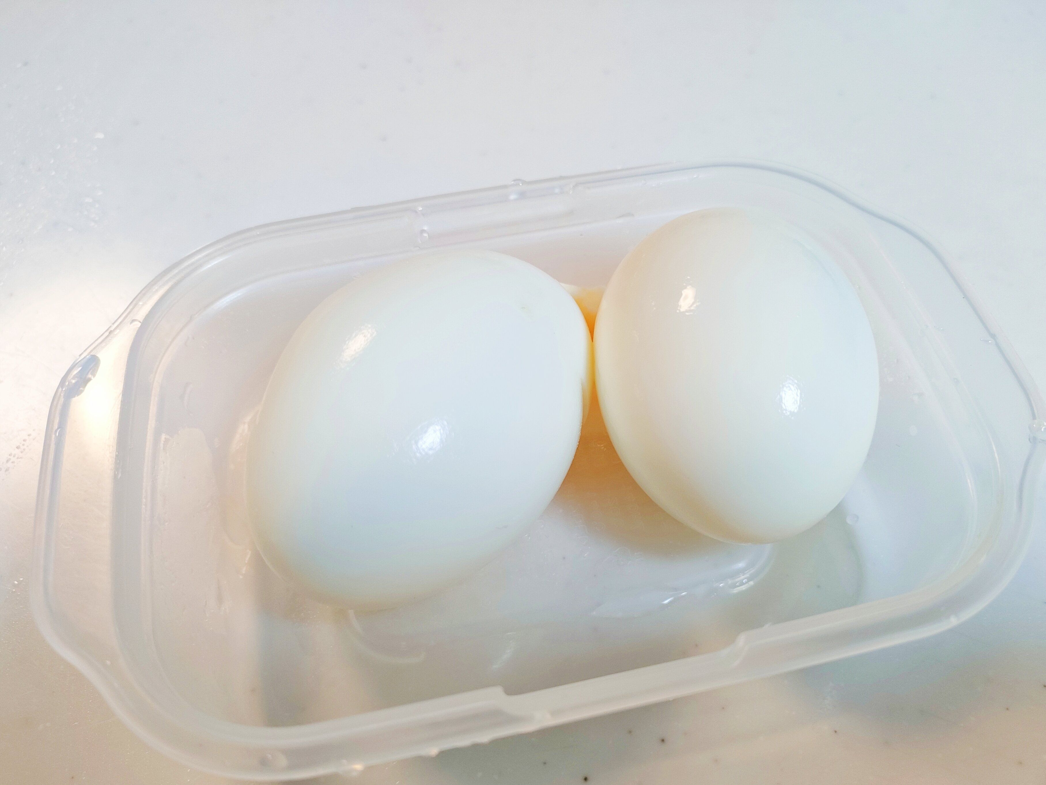 実際に茹でた卵を入れてみました。小玉だともう1個入るかなと試してみましたが、無理でした。