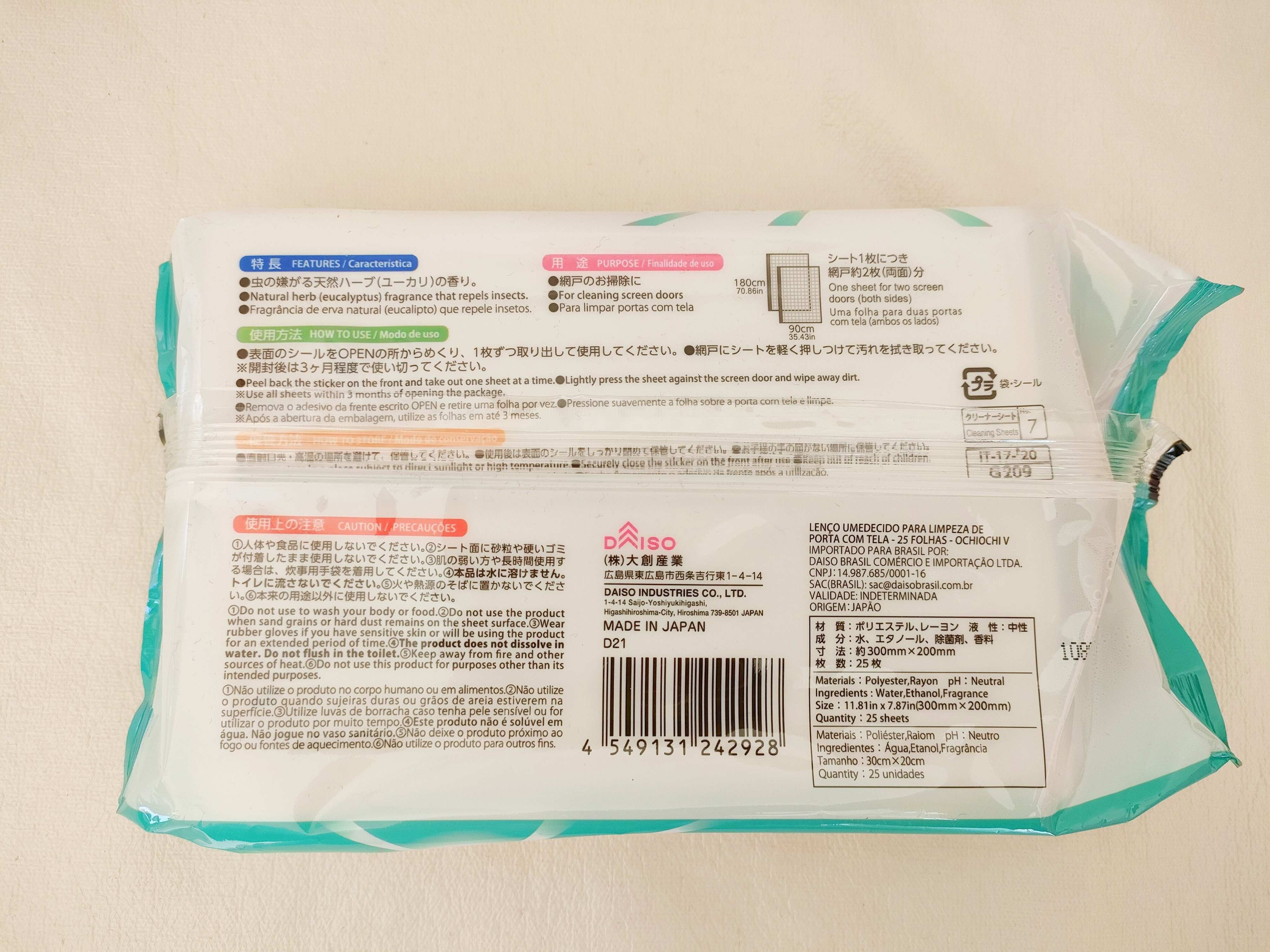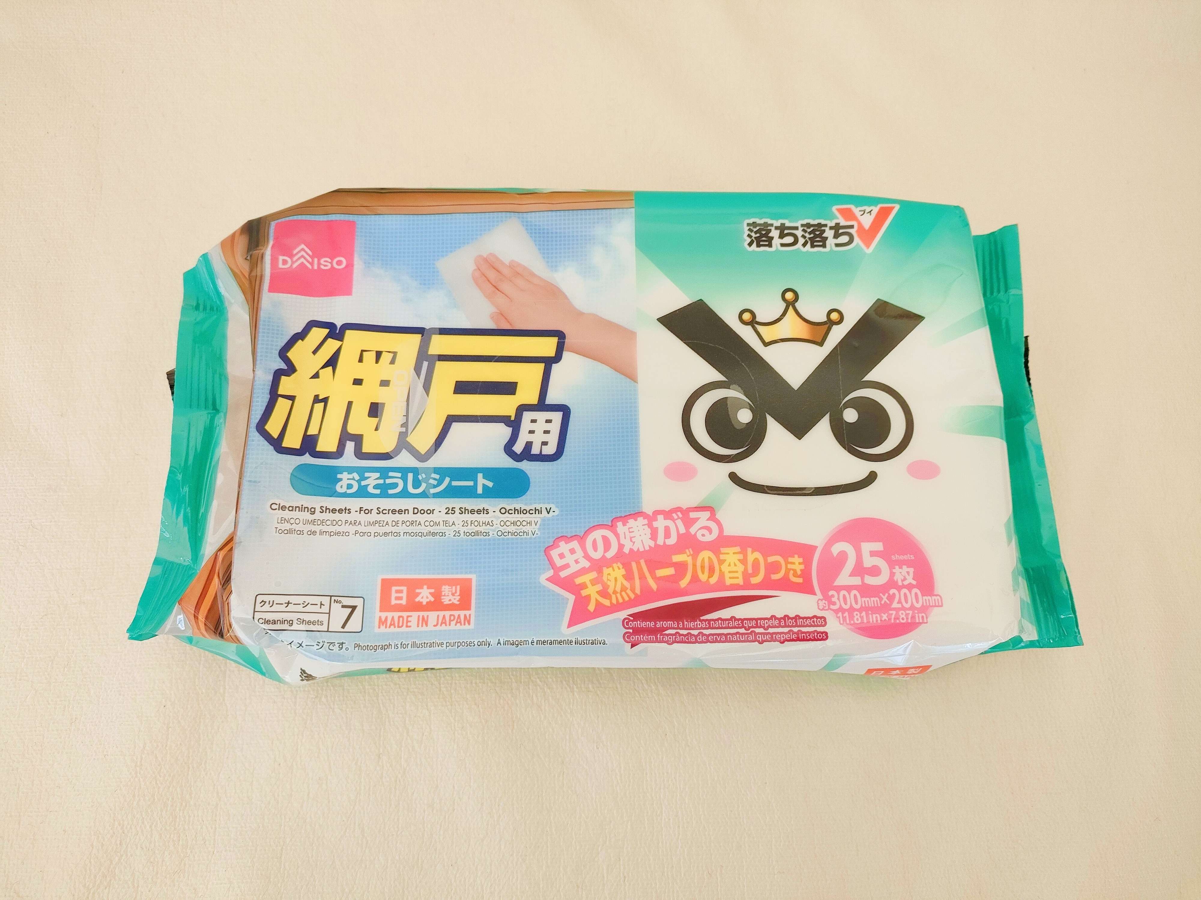 ダイソーにたくさん販売されている「落ち落ちシリーズ」の1つで、網戸専用のお掃除シート。