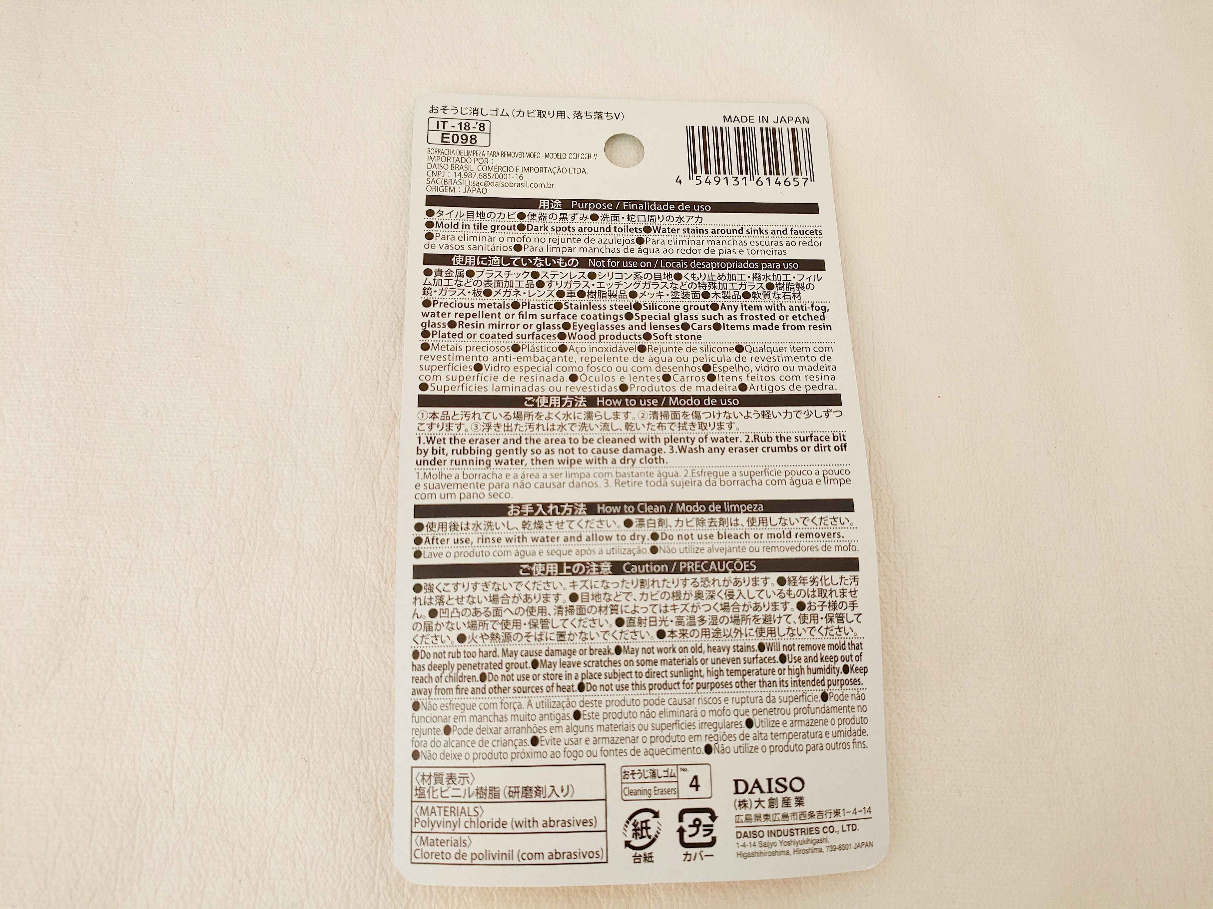 こちらは「カビ取り用 おそうじ消しゴム 落ち落ちV」110円です。