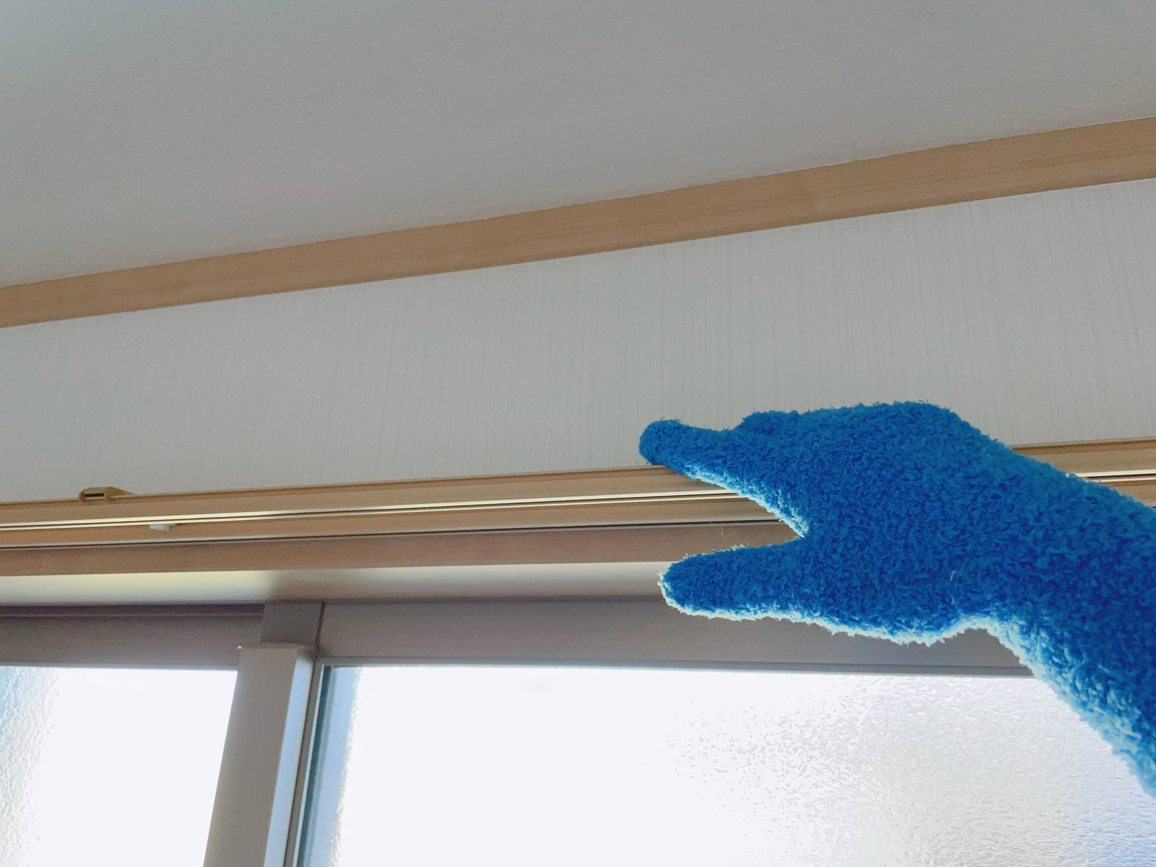 エアコンやカーテンレールの上などの高い位置も片手でサッとホコリをとることができる上、レールを掴むように拭くと、レールのサイド側も綺麗になりました。