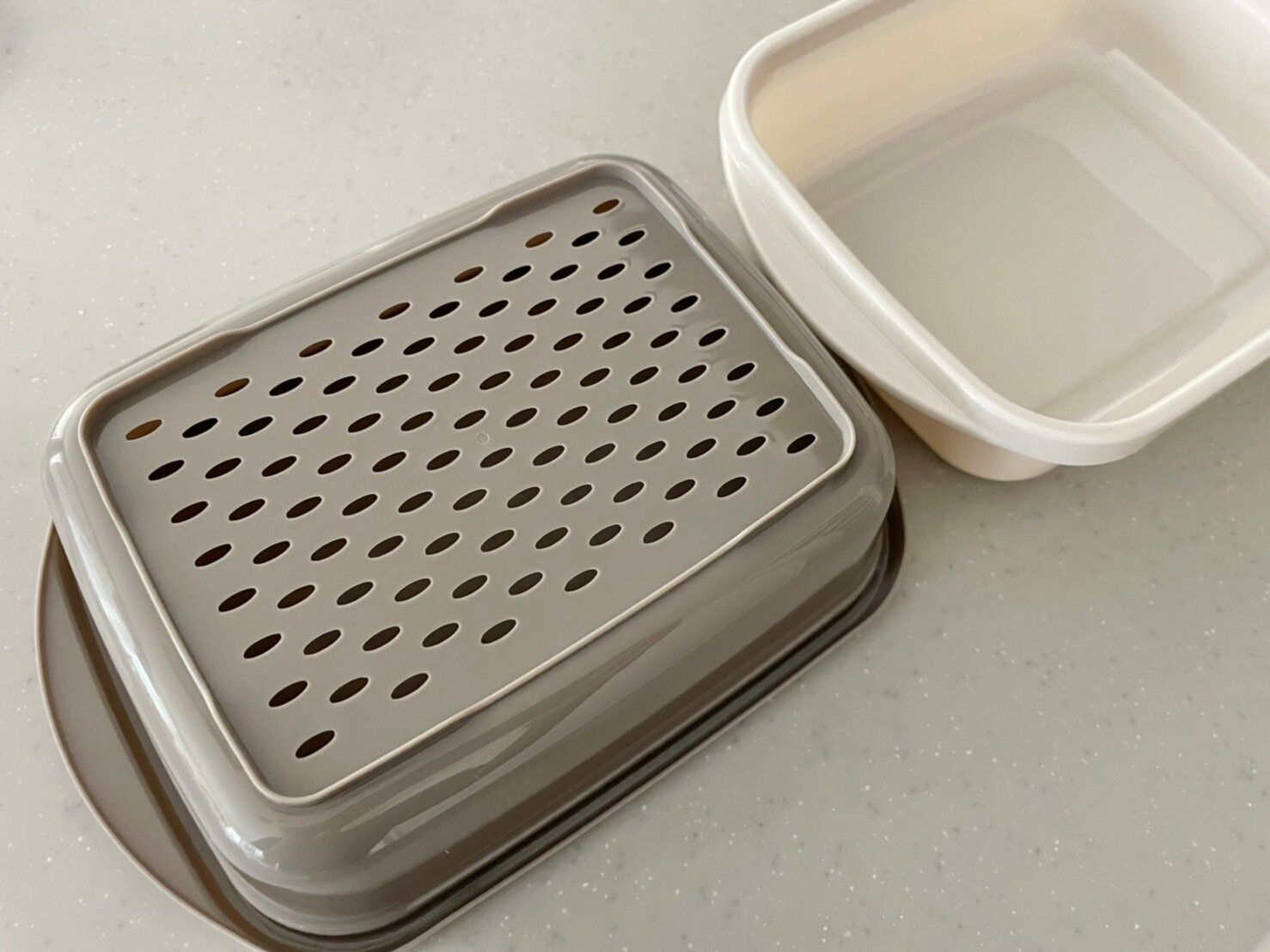 本体はグレージュやブラウンの優しい配色になっています。100円ショップで販売している温野菜メーカーに比べると、落ち着いたデザインがポイントです。