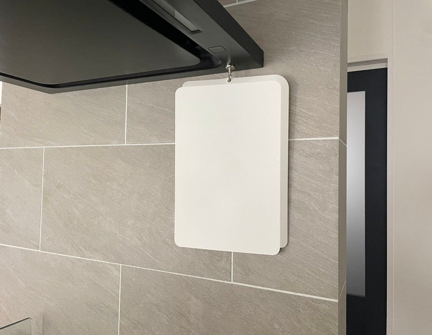 フックに掛けられるようにまた板に穴が開いているので、洗ったあとは掛けて干すことが可能。レンジフードに磁石タイプのフックを取付けそこにぶら下げておけば、使いたいときにも取り出しやすいですね。
