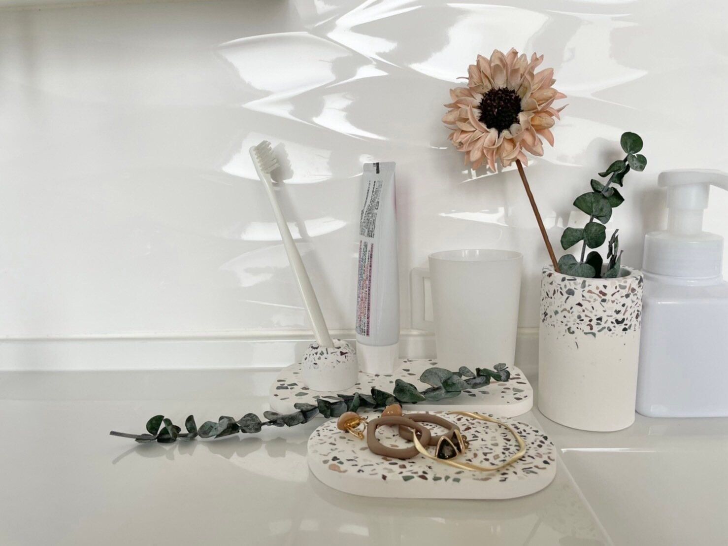 3COINSの珪藻土トレーのデザインと性能に大満足です!珪藻土トレーで、素敵に洗面台を彩ってみてはいかがでしょうか。