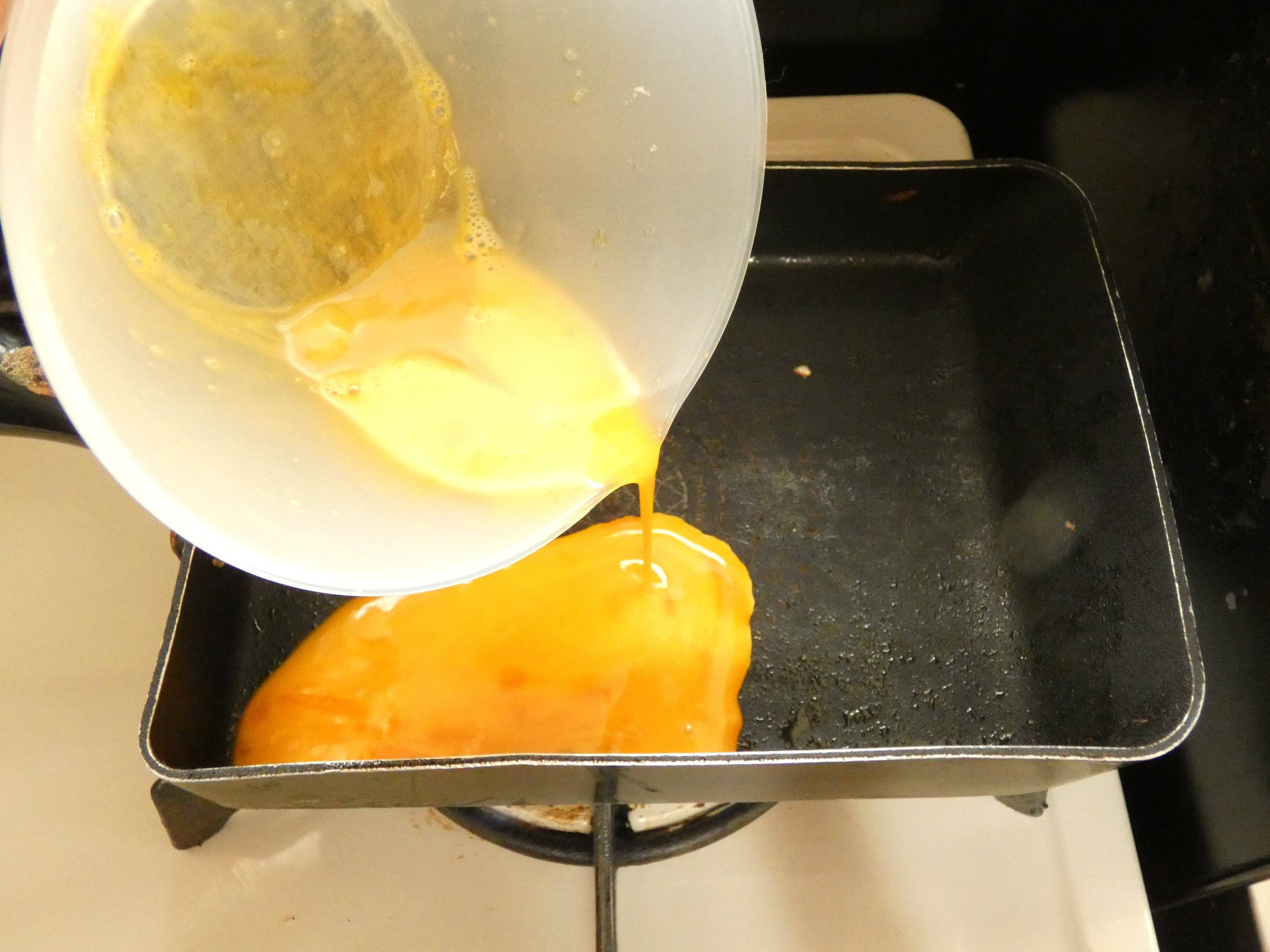 注ぎ口からフライパンへ流し込み、卵焼きを作るのに便利!