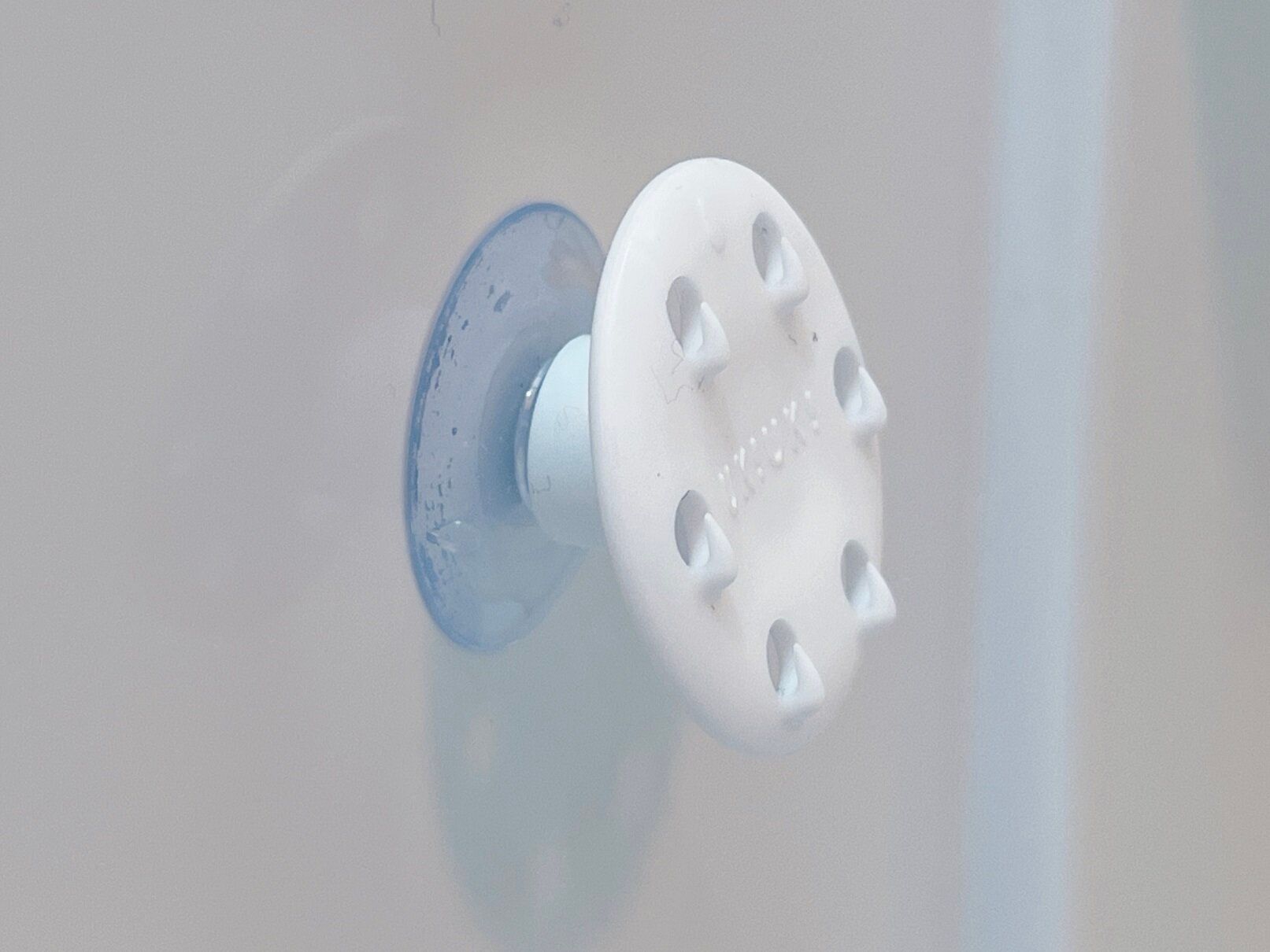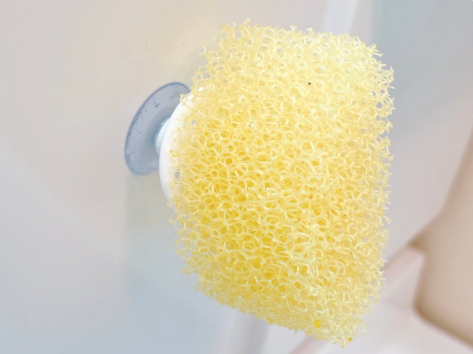 ポイントは吸盤に対して少し傾斜しているところ。スポンジを斜め置きすることで角に水分が集中し、しっかりと水切れをしてくれるのです。スポンジの菌の繁殖も抑えられますね。