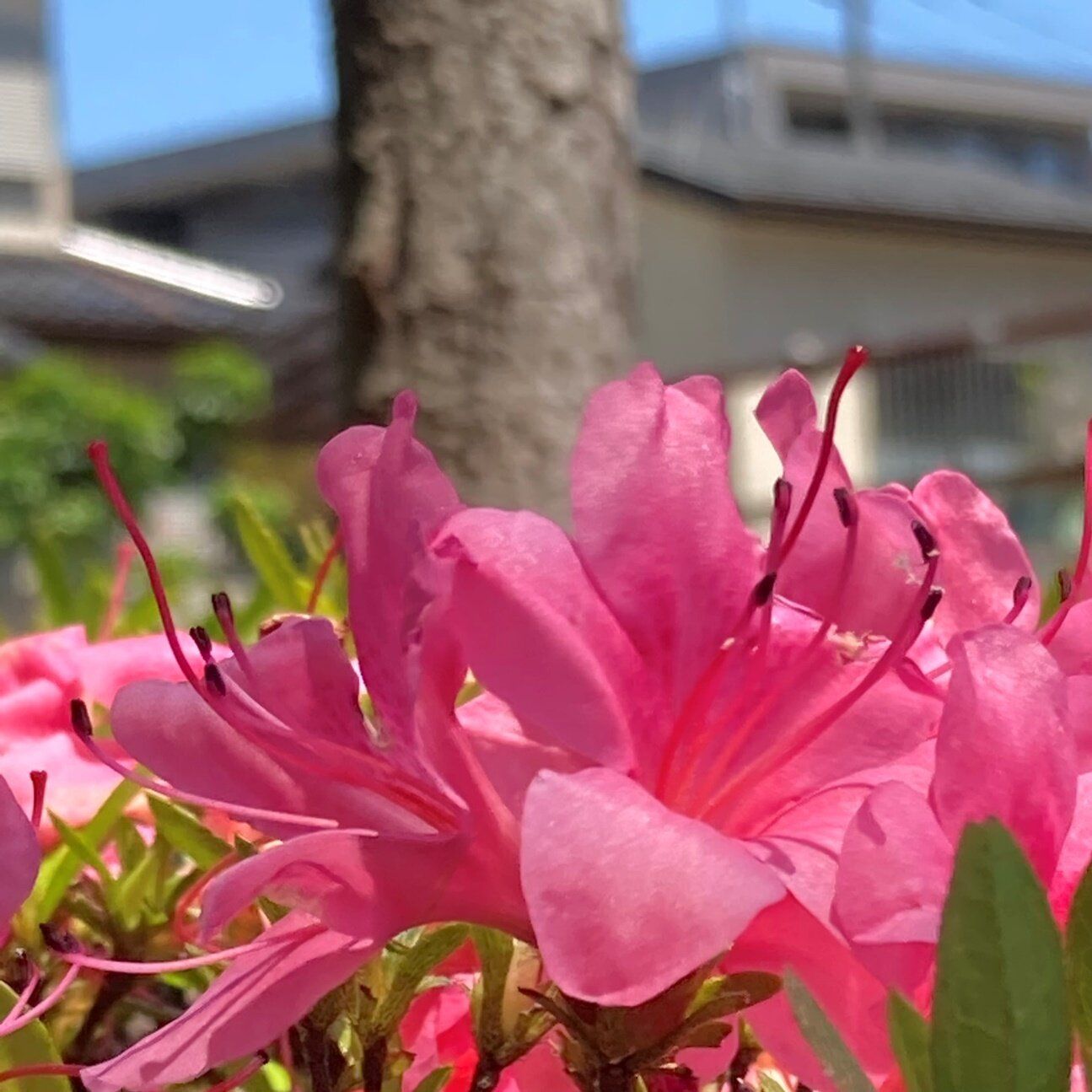 単レンズのスマホで「背景ボケ」の写真を撮影するのはけっこう難しいのですが、「2倍望遠レンズ」を装着して花にピントを合わせれば、背景がきれいにぼけました。