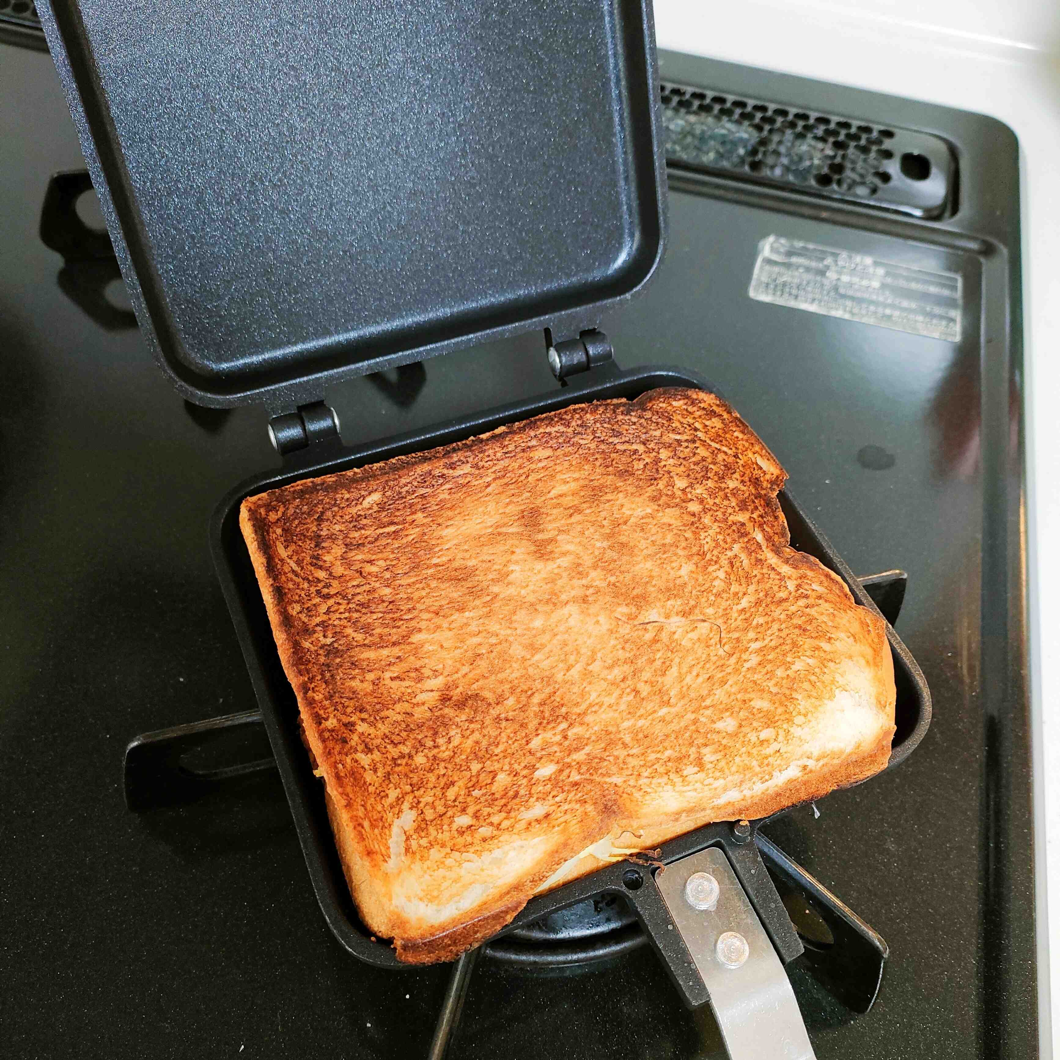 焼くコツとしては、前面に火が通るタイプなので、弱火でゆっくり焼くこと。強火だとあっという間に食パンが焦げてしまいます。