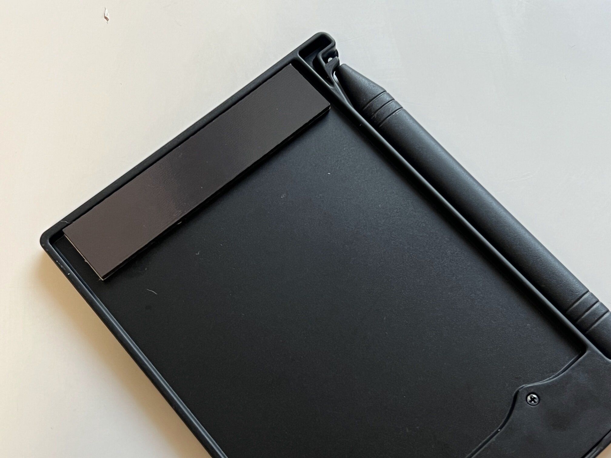 専用のスタイラスペンがあり、ペンはサイドのホルダーにぴったり収まるから紛失の心配もありません。急いでいるときでもサッと出して、紙に書くように簡単にメモができます。