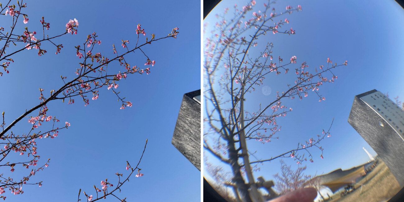 風景写真を魚眼レンズで撮影したサンプルをもうひとつ。ふつうのスマホカメラでは写せない広い範囲が写っていて、いい感じじゃないでしょうか。