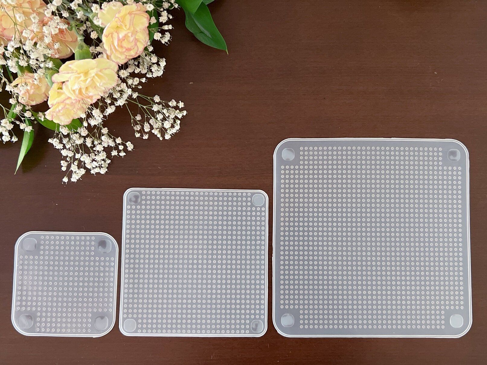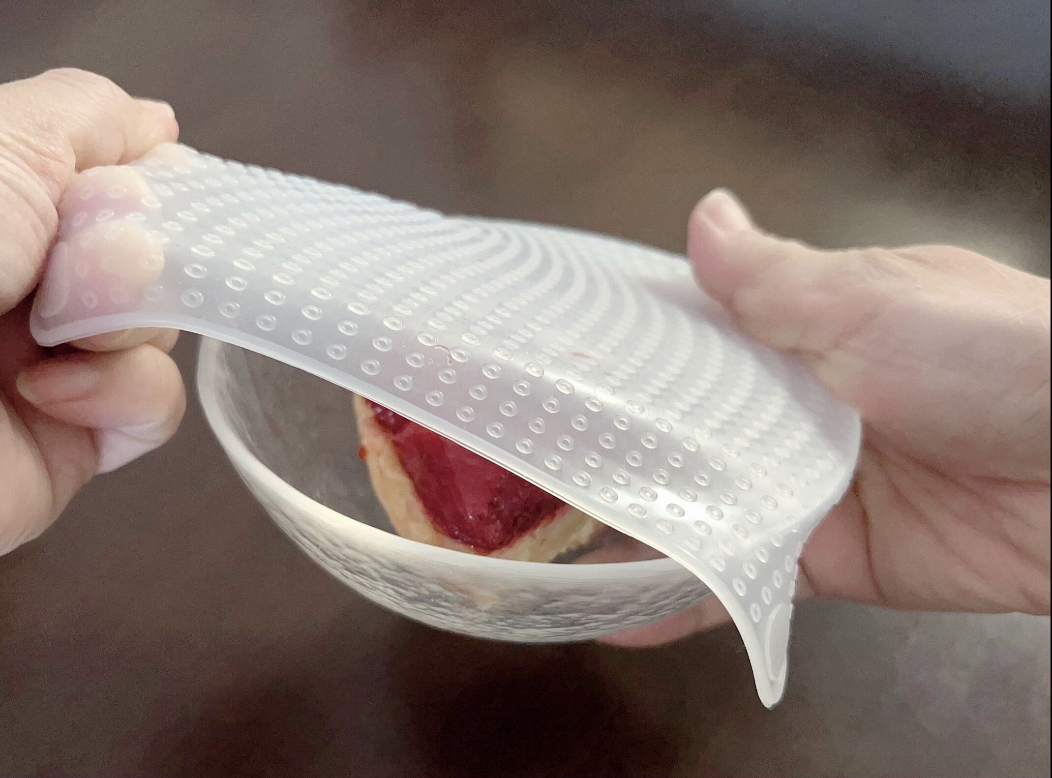 今回ご紹介するのは、3COINSの「伸ばして吸着するシリコーンラップ」。繰り返し洗って使えるので経済的だし、ゴミを減らせる環境に優しいラップです。従来のラップとしての使い方はもちろん、滑り止めや瓶の蓋を開けるときにも便利ですよ。