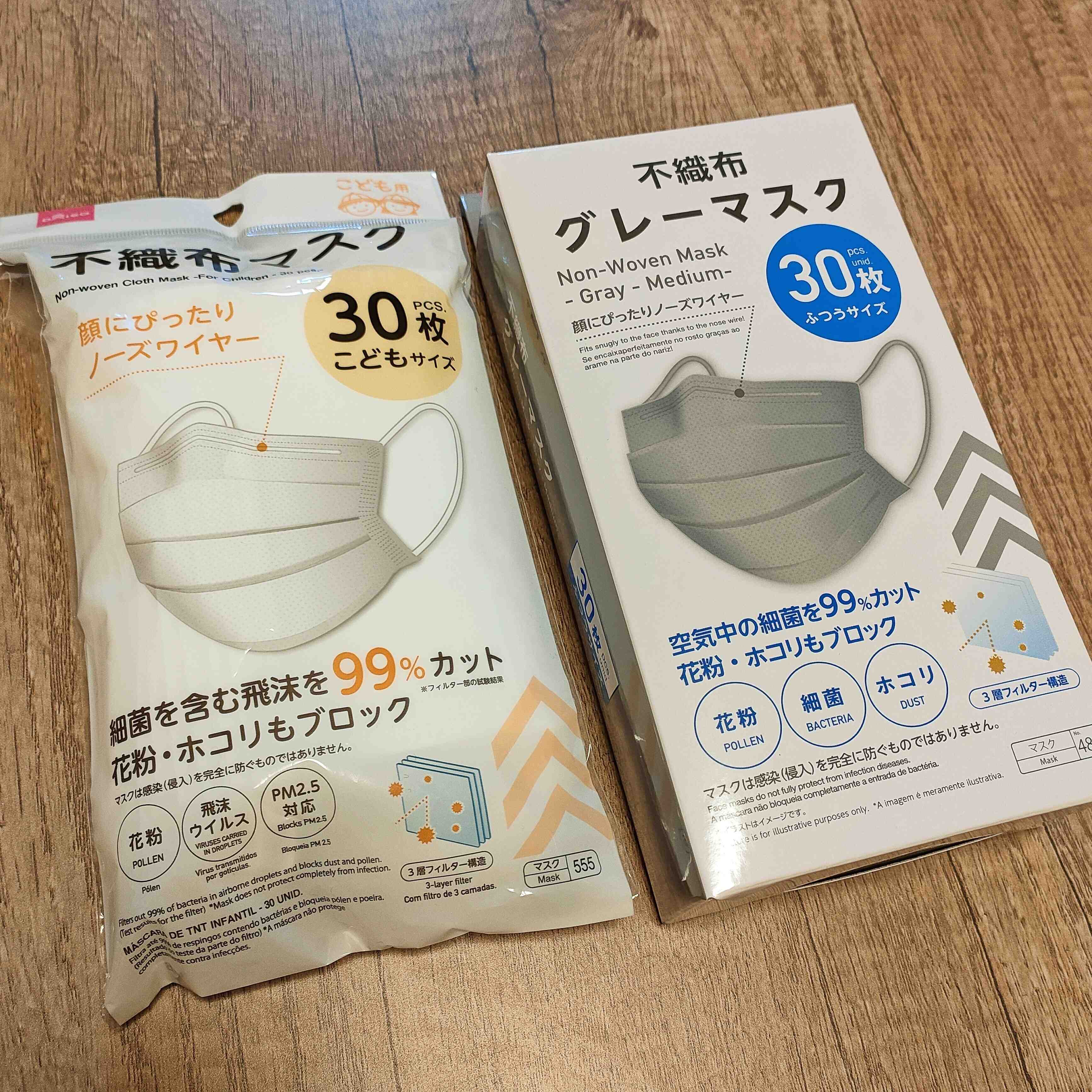 大人用の不織布マスクはホワイト、グレー、ブラックの3種類があり、いずれも人気となっています。見つけたときには大量買いするのをオススメしたいほど。