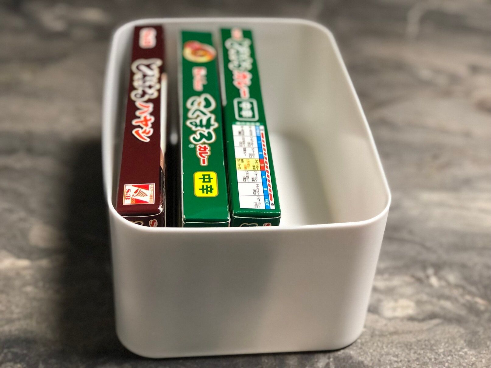 箱入りのレトルトカレーも向きを変えるとスッキリ収納できます