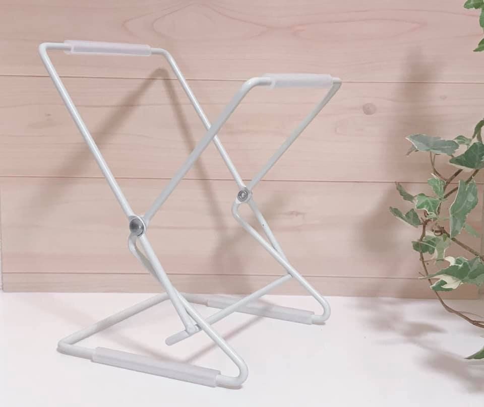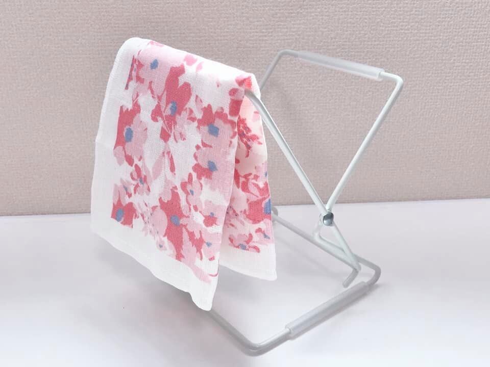 布巾かけとしても活用でき、約30cm四方の布巾なら2枚は干せます。小さめなので、キッチンの省スペースで置けちゃいます。ぬれたままの布巾は雑菌が繁殖しやすいので、布巾かけを使って素早く乾燥させたいですね!