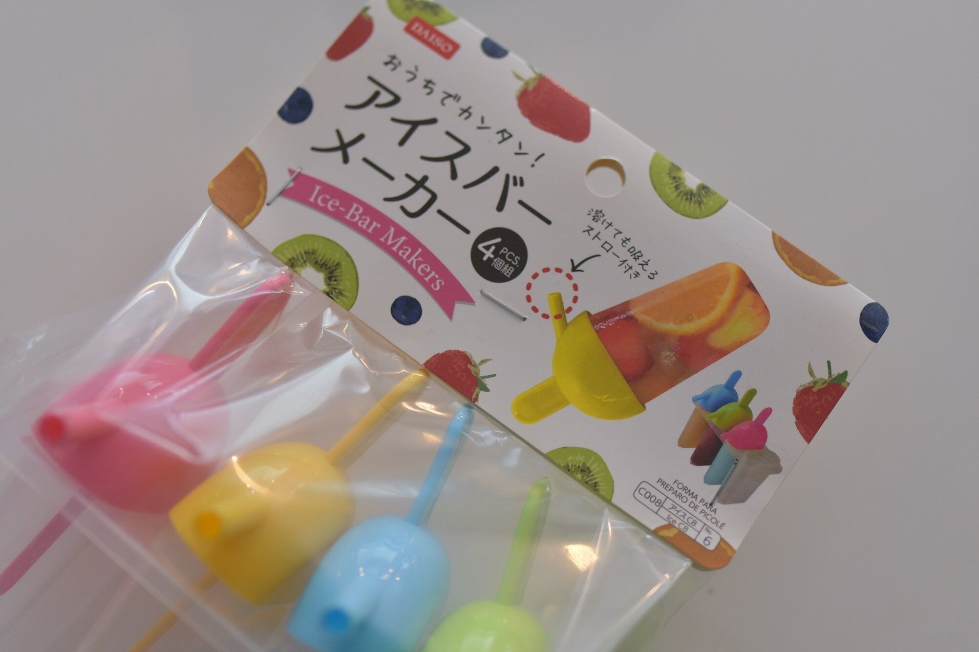今回ご紹介するのは、ダイソーの「アイスバーメーカー」です。商品名のとおり、アイスバーがつくれてしまうアイテム。つくり方はとっても簡単で、お好みのジュースやシロップを容器に入れて、冷凍庫で固めるだけ。