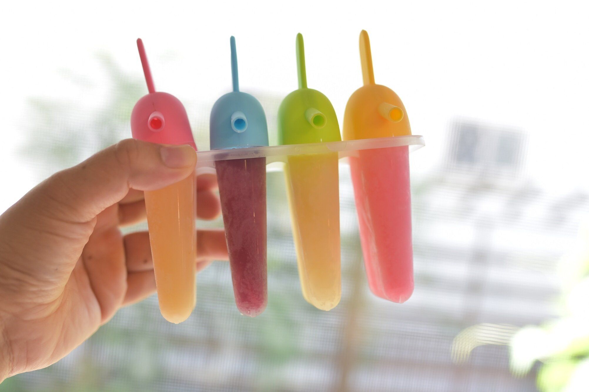 水に入れて1分ほどしてから引き出してみたら、スルーっと気持ちよく抜けました。カラフルアイスバーの完成です!