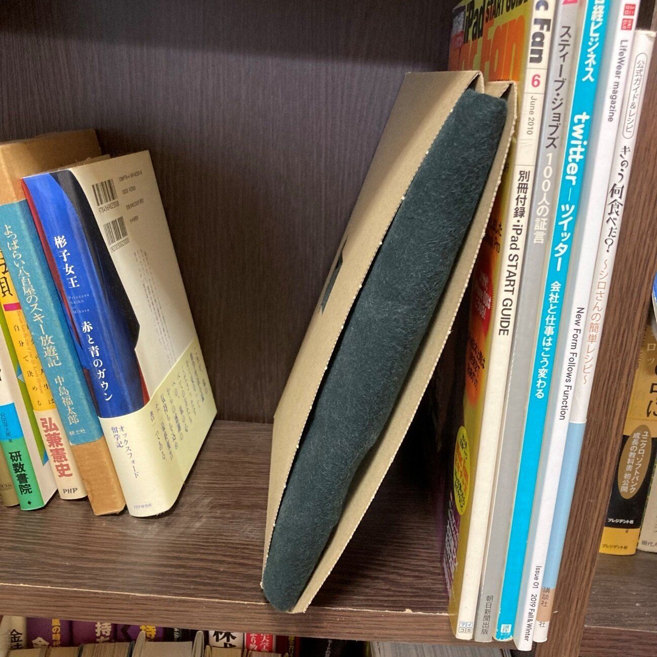 せっかくなので、押し入れに入っている色とりどりのTシャツを、「TETEMU」を使って本棚に収納するのもいいですね。ブティックみたいな、おしゃれなお部屋に変身するかもしれませんもの。
