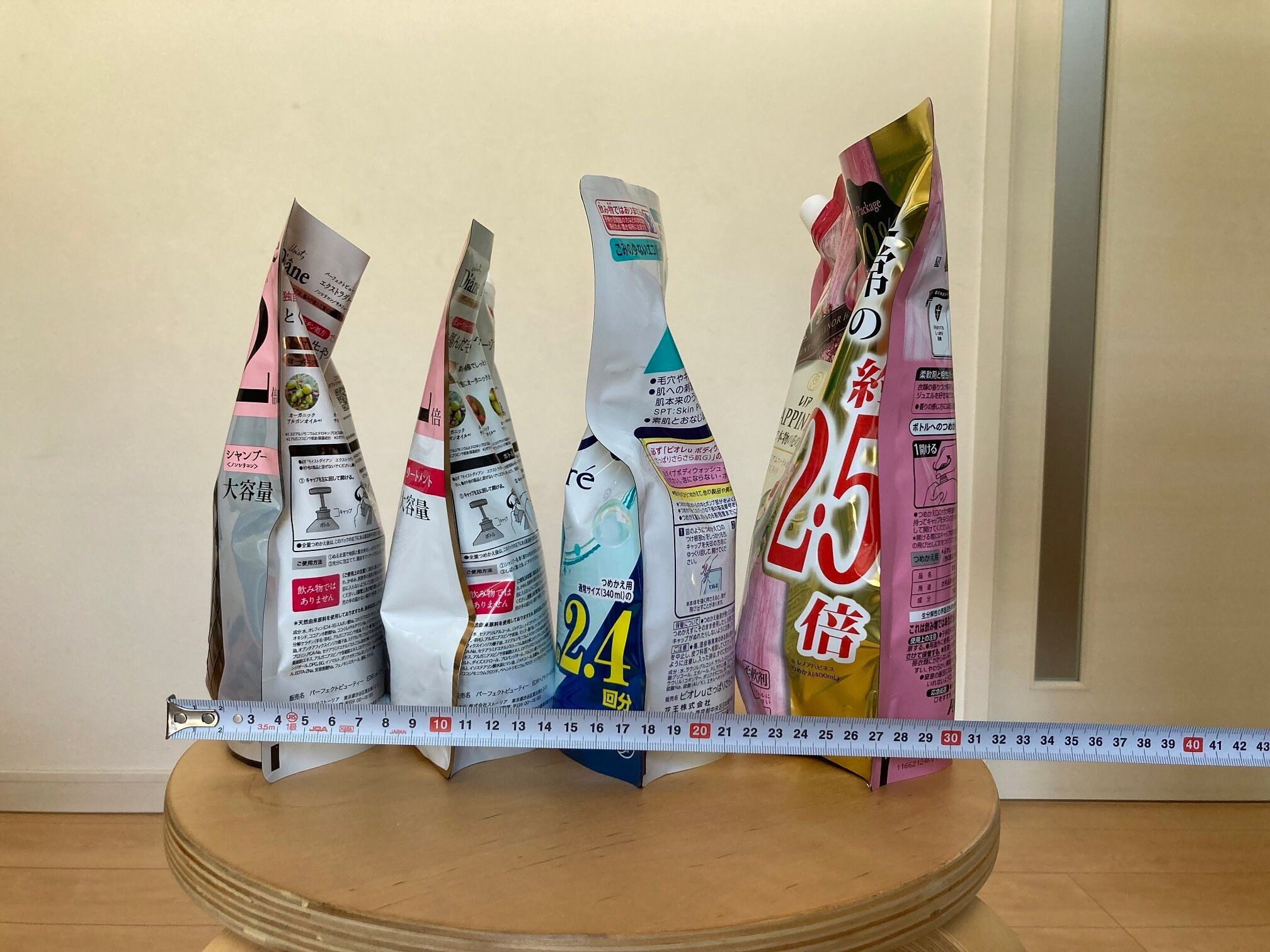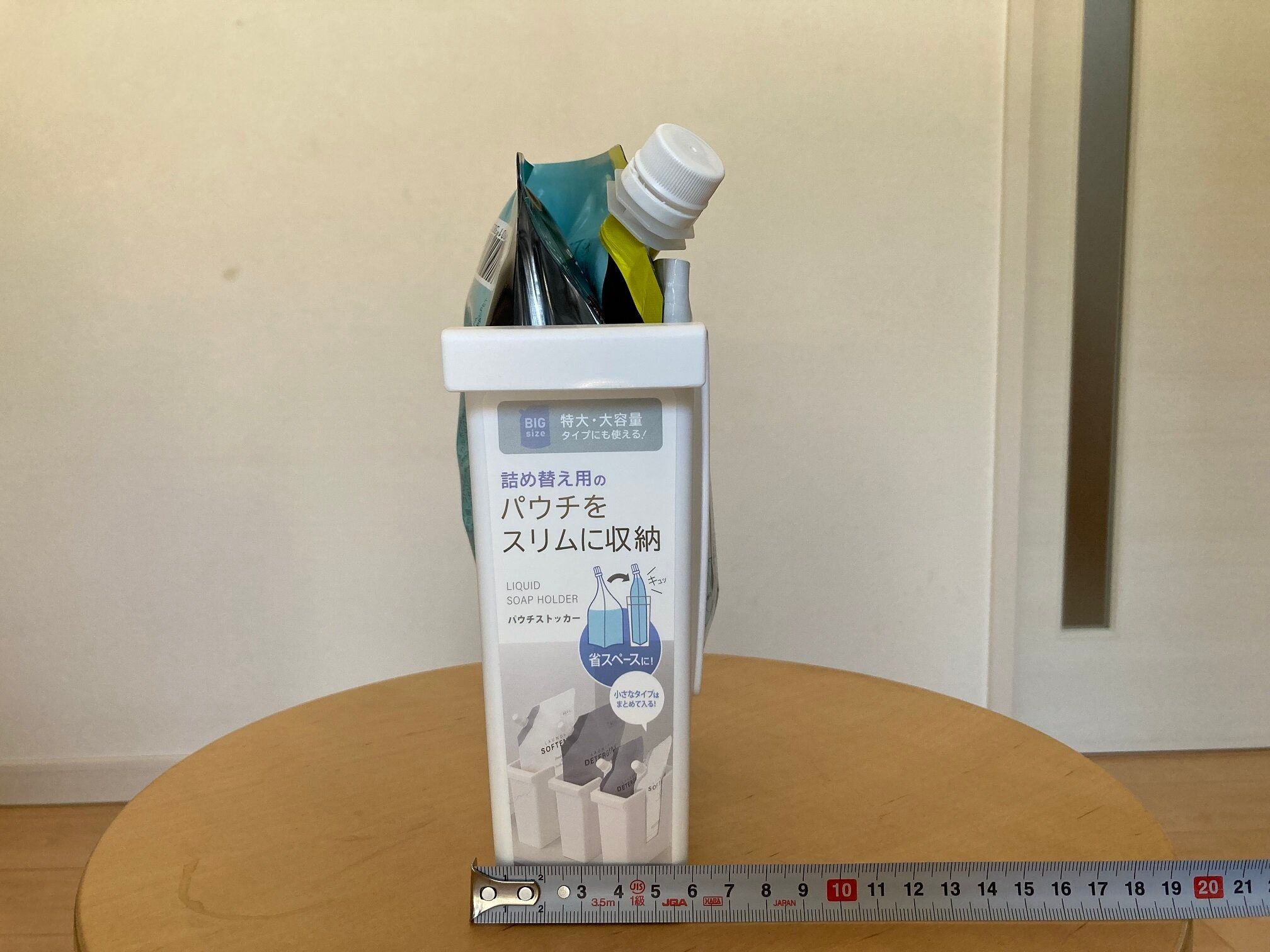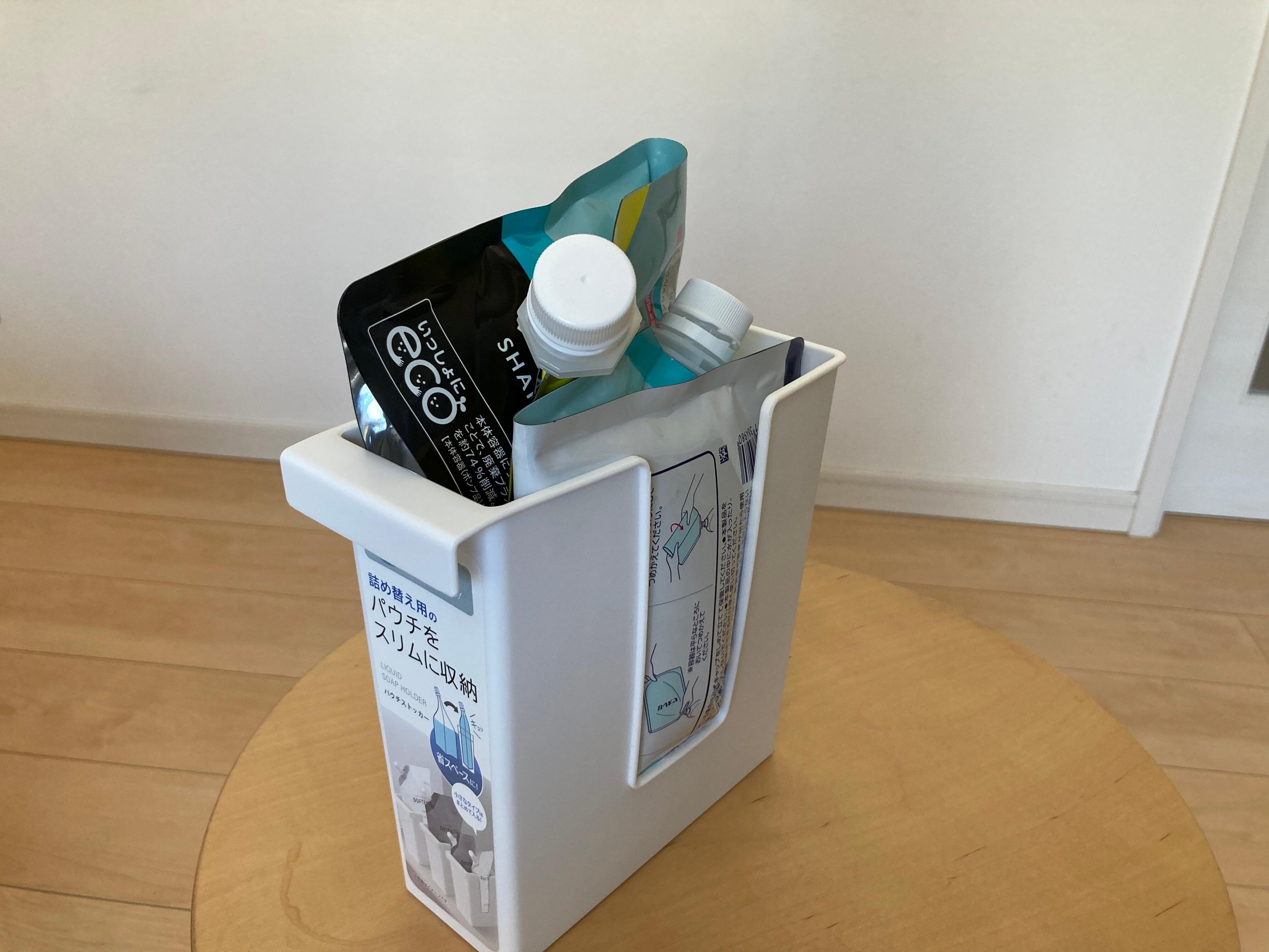 さらに筆者が「いい!」と思ったのは、新品未使用品よりも使いかけのパウチを入れたときです。こういった詰替パウチは、中身が半分になっても……