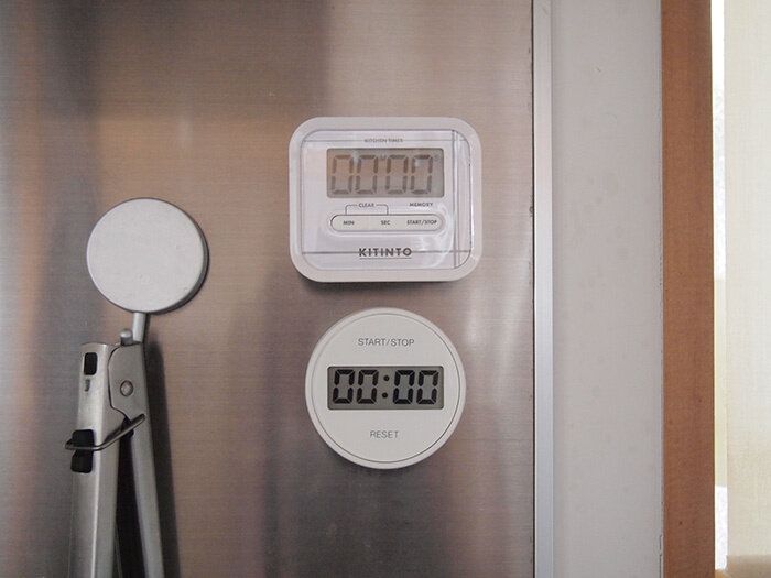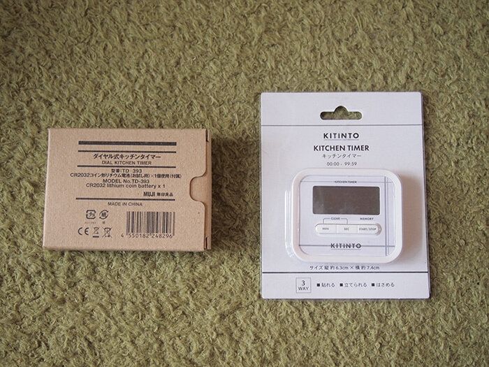 両者、キッチンタイマーということで機能的にはほぼ同じですが、このマグネットとして貼った時のパネルの表示がさすが無印良品……とは正直思いました。光の加減で見えないということもない!便利です。お高いだけあるのですが、長く使うことを考えたら無印良品がよいなぁと思ったしだいです。
